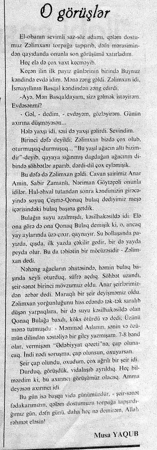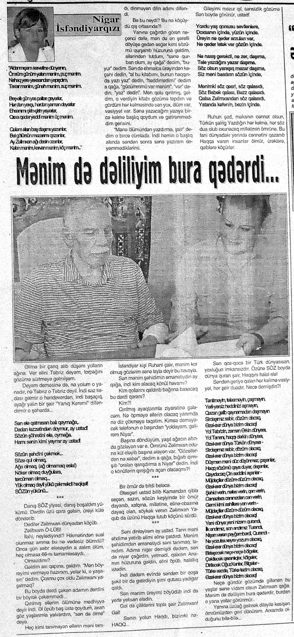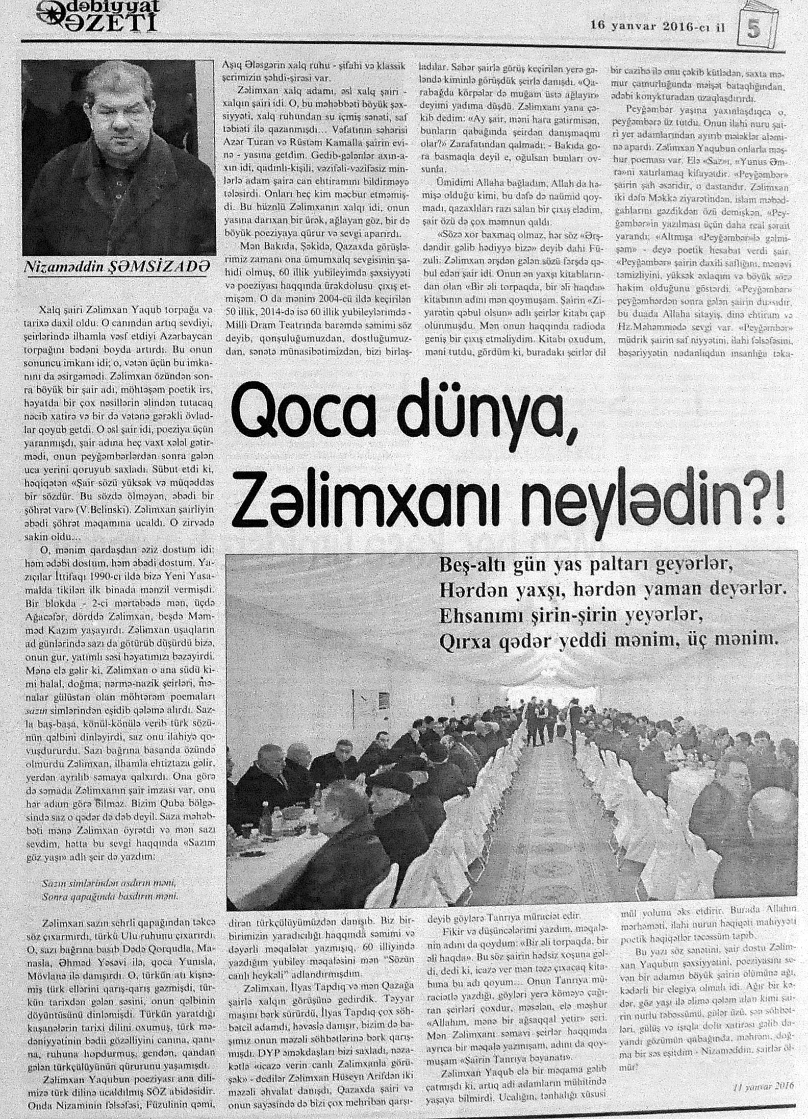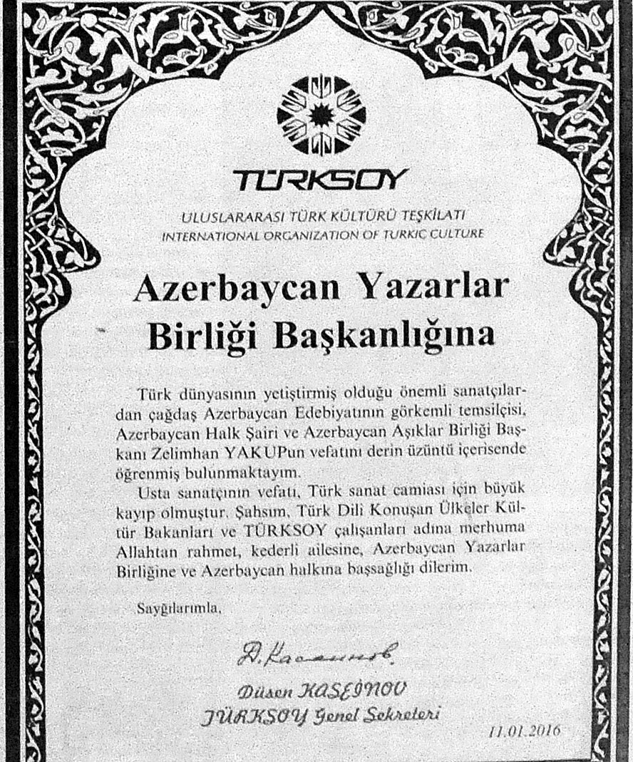 Zəlimxan Yaqubun vəfatı tlə bağlı