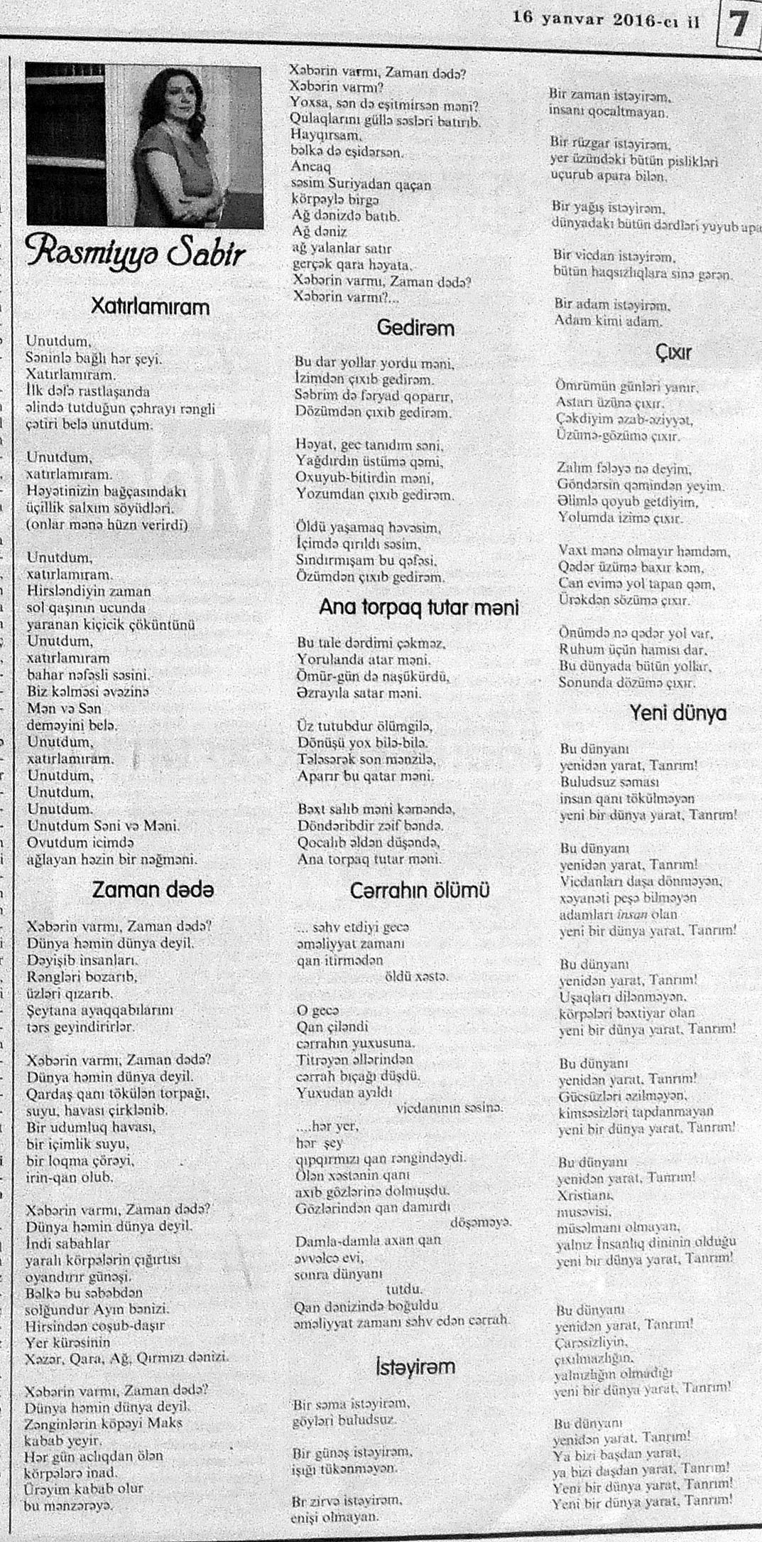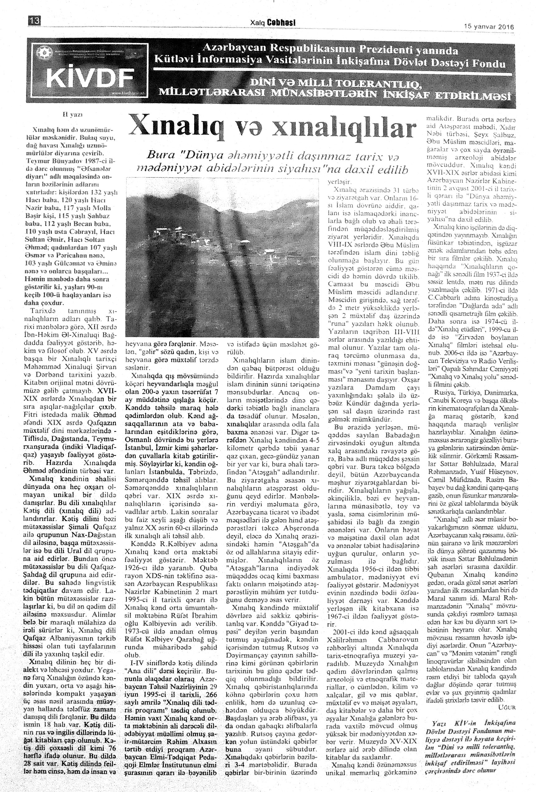 Azərbaycan.- 2016.- 28 yanvar.- S.4.
