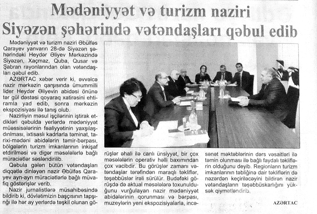 Siyəzəndə vətəndaşlarla görüşüb //Mədəniyyət.- 2016.- 29 yanvar.- S. 8.