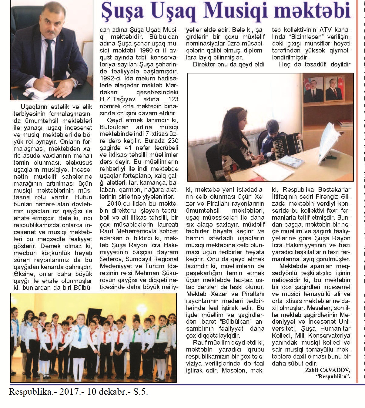 Azərbaycan Dövlət Musiqili Teatrı 562. Ələsgərli, Ç. “Qafqazlı qardaşqızı” operettası yeni quruluş və yeni ifalarda: [Əməkdar incəsənət xadimi Alik Usubovun hazırladığı eyniadlı tamaşanın nümayişi haqqında] //Mədəniyyət.- 2017.-15 dekabr.- S.10. 563. Lalayev, Ə. “Teatr böyük bir şərtilikdir”: [teatrın direktoru Əliqismət Lalayevlə ART müsahibə] /müsahibəni apardı Sərdar Amin //Ədəbiyyat qəzeti.- 2017.- 9 dekabr.- S.25. 564. Musiqili Teatrın direktoru Fəcr festivalının münsiflər heyətində: [Əliqismət Lalayevin İranda keçiriləcək 36-cı Beynəlxalq Fəcr Teatr Festivalında iştirak etməsi haqqında] //Mədəniyyət.- 2017.- 15 dekabr.- S.3.