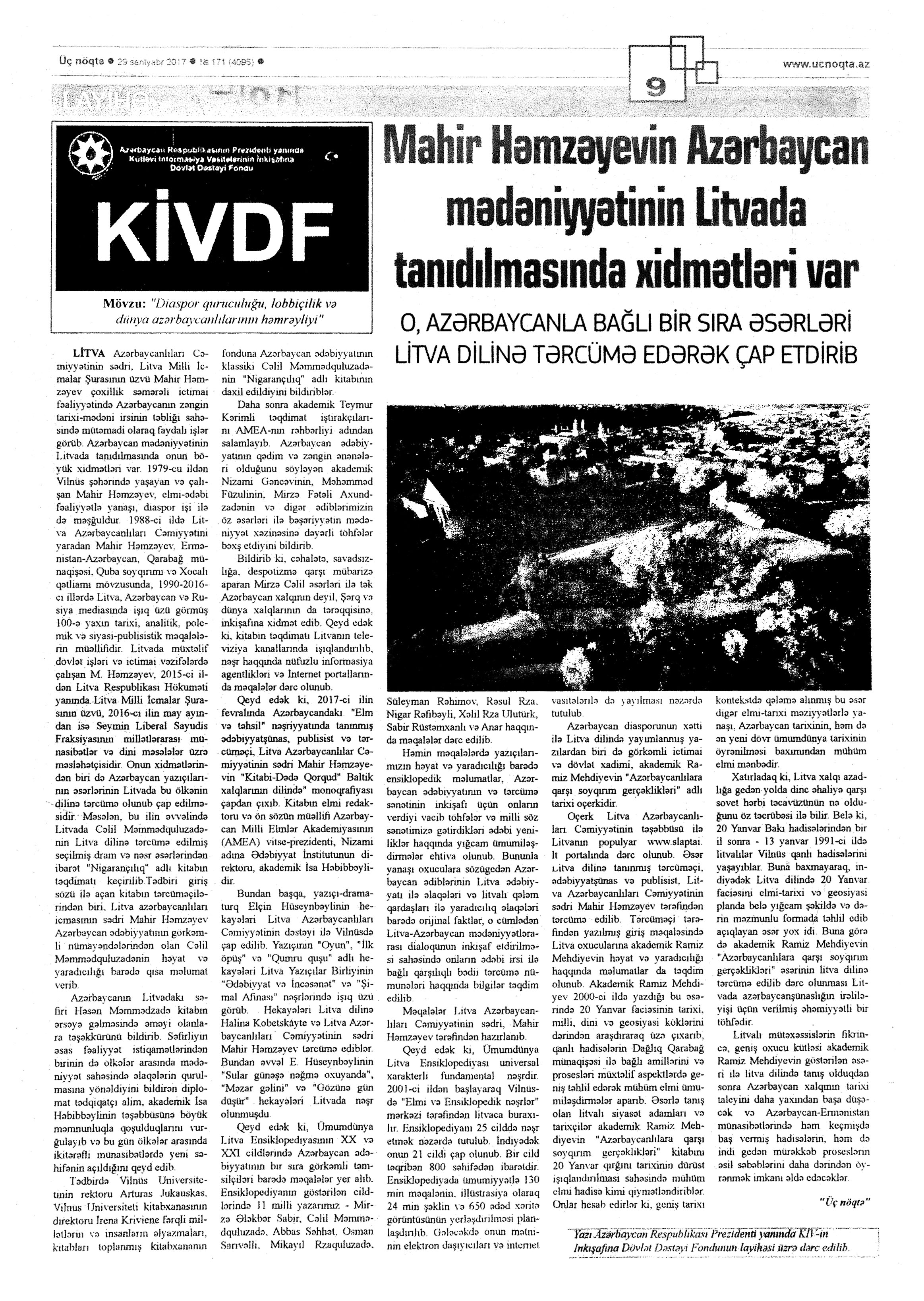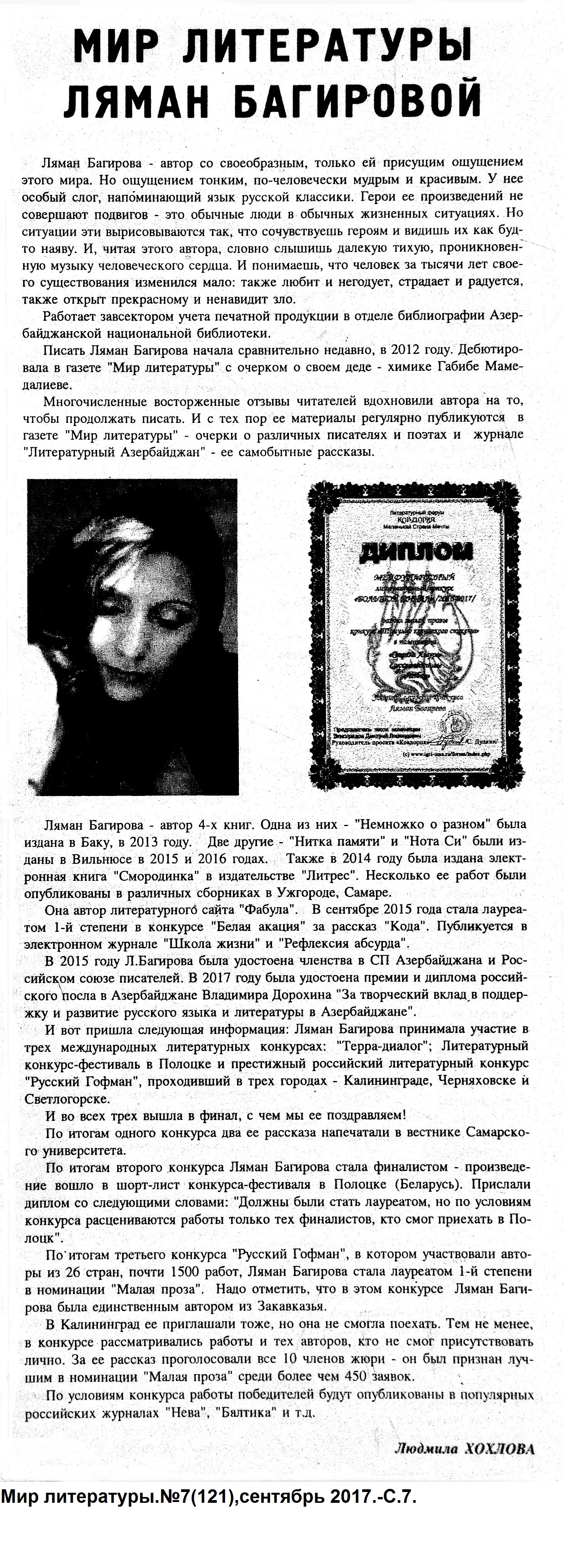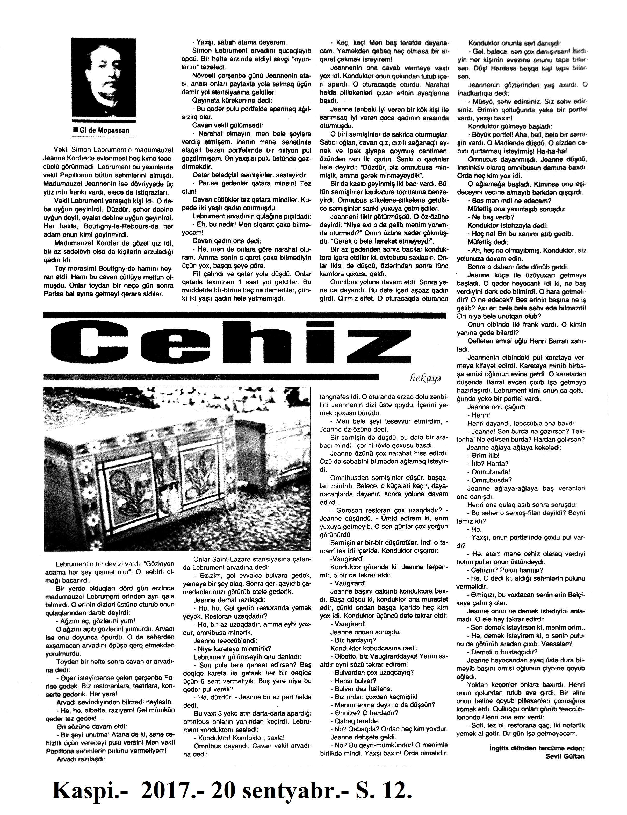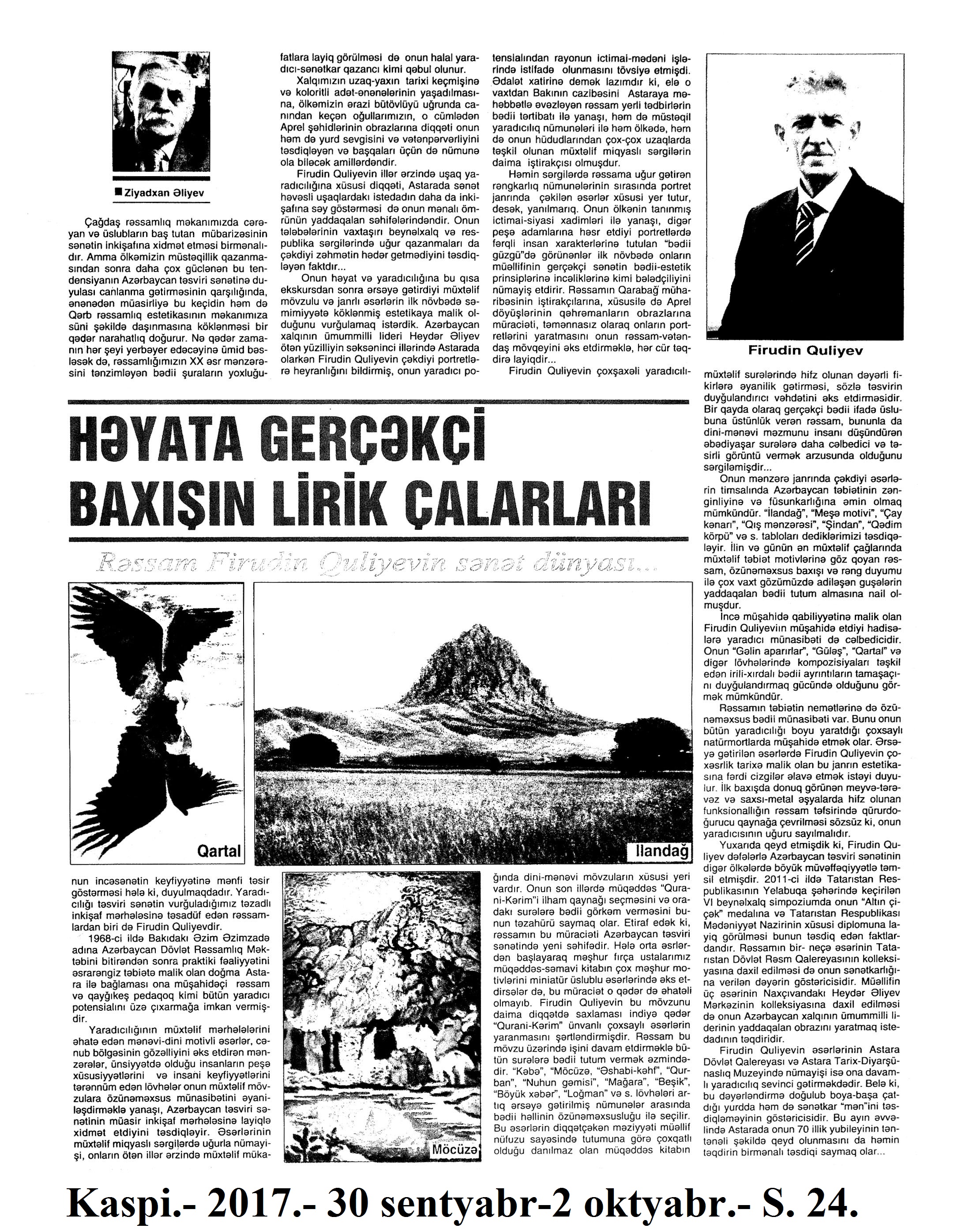 HEKAYƏLƏR 450. Coys, C. Evelin //Ədəbiyyat qəzeti.-2017.- 30 sentyabr.- S.13. 451. Fazilqizi, T. Nənəm //Kaspi.-2017.- 9 sentyabr.- S.22. 452. Mehdi, Q. Su vətənləşəndə //Kaspi.-2017.- 30 sentyabr.- S.22. 453. Məhərrəmov, V. Qəribə adamlar //Kaspi.-2017.- 23-25 sentyabr.- S. 22. 454. Musaoğlu, A. Müəlllim //Ədəbiyyat qəzeti.-2017.-30 sentyabr.- S.4-5. 455. Tahirzadə, Ə. Elçilik //525-ci qəzet.-2017.- 1 sentyabr.- S.23.
