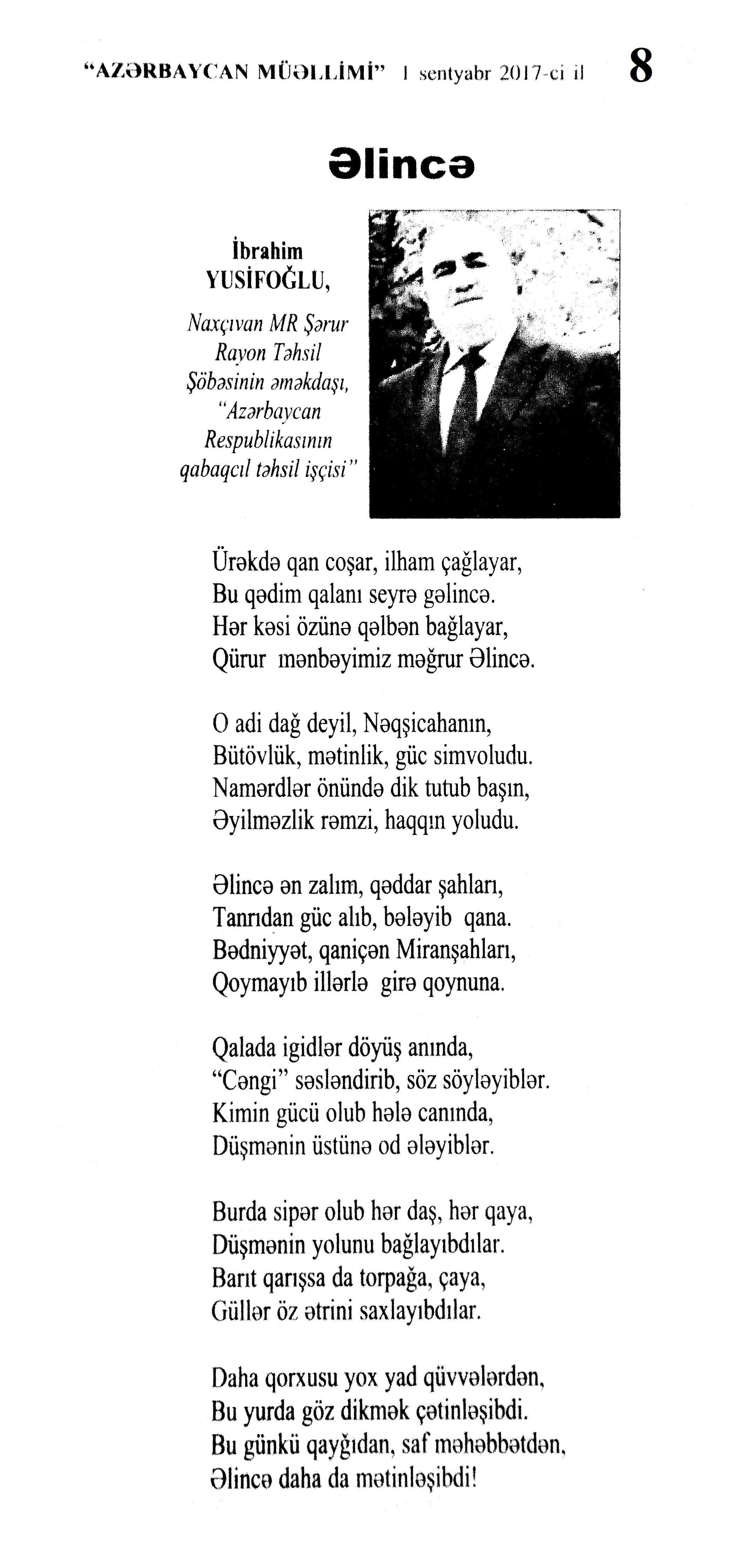 POEMALAR 465. Əlioğlu, N. Oğul borcu...: Poemadan bir parça //Ədalət.-2017.- 30 sentyabr.- S.13.