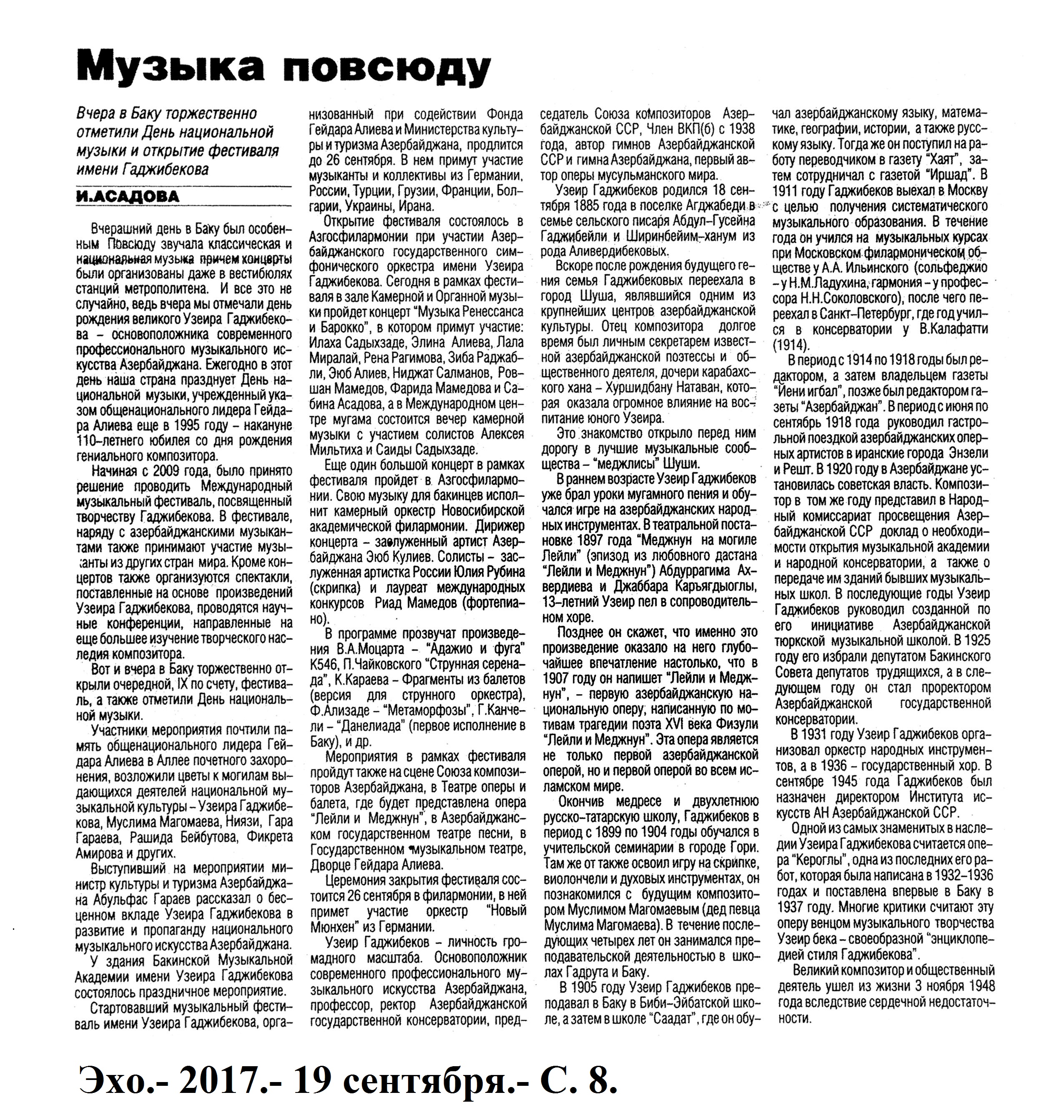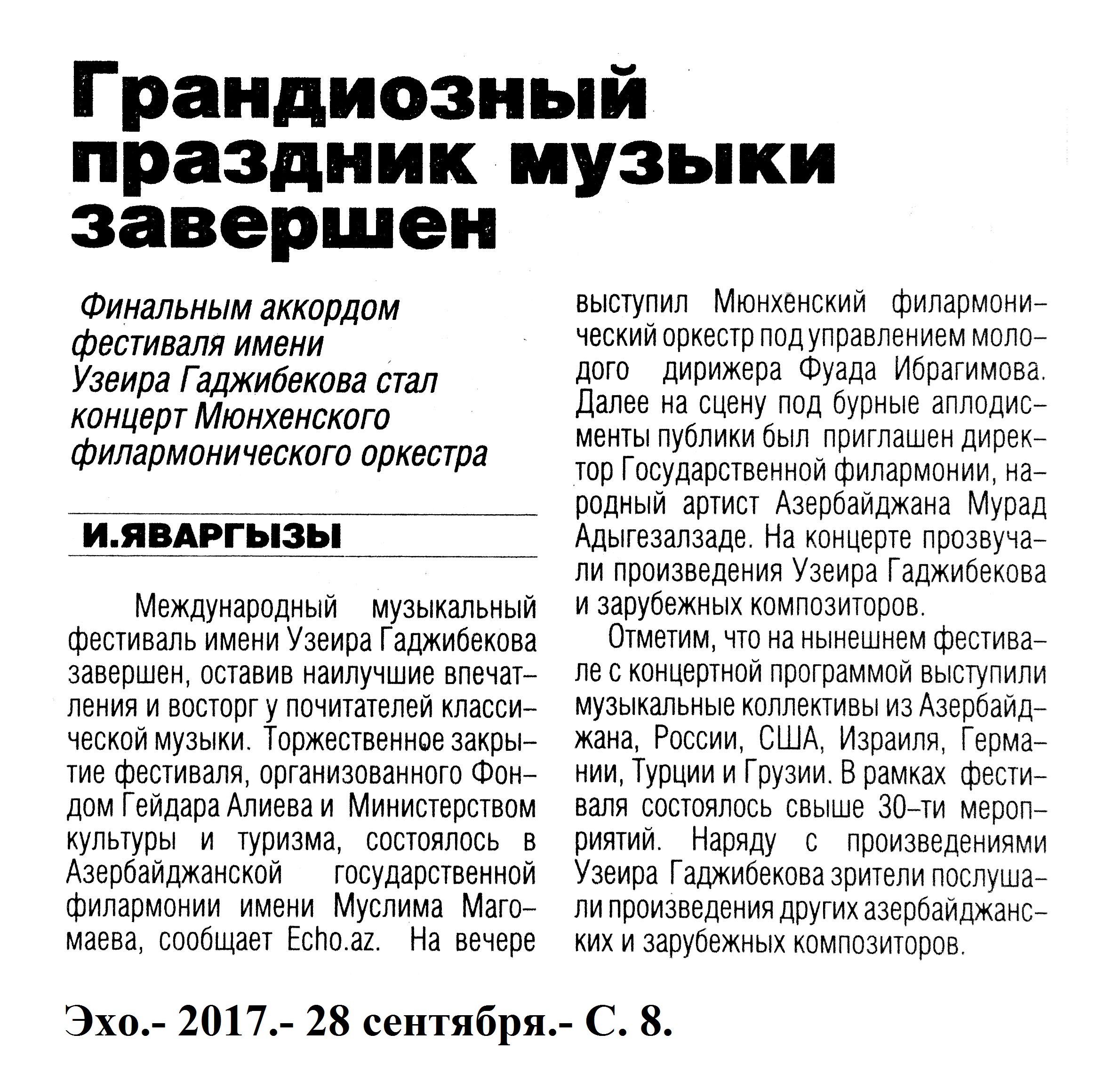 музыкальный фестиваль Узеира Гаджибекова ……..
