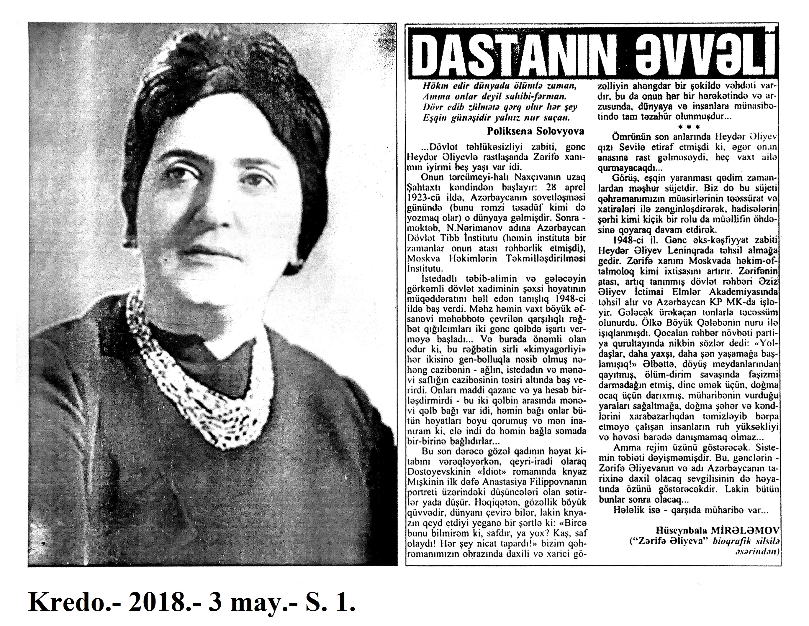 Zərifə Əliyeva – 95 546. Abasov, C. “Zərifə Əliyeva. Biblioqrafiya” kitabının təqdimatı oldu: Milli Kitabxana “Zərifə xanım Əliyeva – 95” elektron məlumat bazası hazırlayaraq istifadəyə verdi //525-ci qəzet.- 2018.- 3 may.- S.3. 547. Akademik Zərifə Əliyeva adına lisey 10 yaşını qeyd edib: [Azərbaycan Dövlət Musiqili Dram Teatrında] //Azərbaycan.- 2018.-2 may.- S.2. 548. Akademik Zərifə Əliyeva haqqında kitabın və elektron məlumat bazasının təqdimatı olub: [M.F.Axundov adına Azərbaycan Milli Kitabxanasında] //Azərbaycan.- 2018.- 3 may.- S.5.; Xalq qəzeti.- 2018.- 3 may.- S.5.; Səs.- 2018.-3 may.- S.4. 549. Azəri, L. Nur dolu həyat və fəaliyyətin salnaməsi: [Milli Kitabxanada keçirilən təqdimat mərasimi haqqında] //Mədəniyyət.- 2018.- 4 may.- S.3. 550. Gəncədə beynəlxalq musiqi festivalı keçirilib: [akademik Zərifə xanım Əliyevanın yubileyi münasibətilə] //Mədəniyyət.- 2018.-2 may.- S.7. 551. Gəncədə Zərifə xanım Əliyevanın xatirəsinə həsr edilmiş “Zəriflik” Beynəlxalq Musiqi Festivalı keçirilib //Azərbaycan.- 2018.- 1 may.- S.7. 552. Mirələmov, H. Dastanın əvvəli: [alim-oftalmoloq Zərifə Əliyeva haqqında] //Kredo.-2018.- 3 may.- S.1.