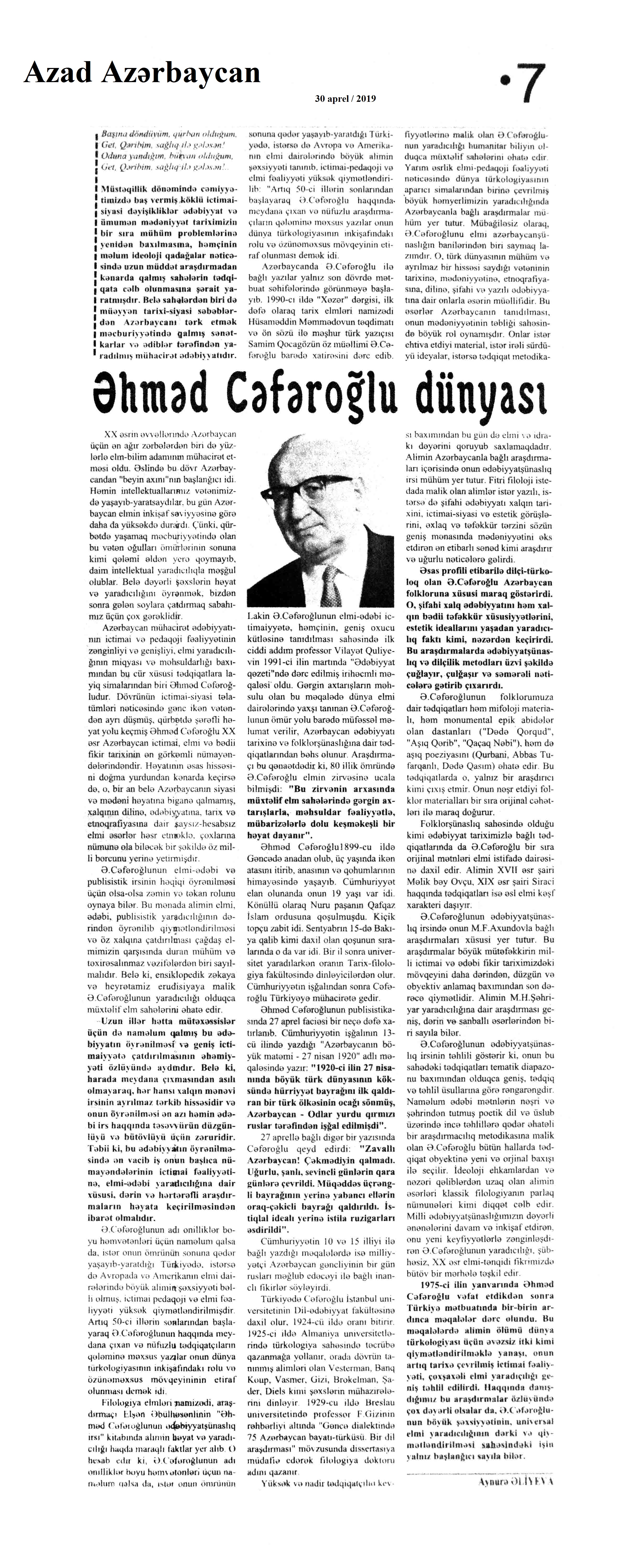 Əhməd bəy Ağaoğlu – 150 952. “Atatürk və Əhməd Ağaoğlu” kitabı çapdan çıxıb: [filoloq-alim Vilayət Quliyevin eyniadlı kitabını yazıçının yubileyinə həsr etməsi haqqında] //Mədəniyyət.-2019.- 26 aprel.- S.7. 953. Dünyaminqızı, Q. Arzusu çin olan fikir və əməl nəhəngi: O, mətbuatı cəmiyyətin barometri adlandırırdı: [ictimai xadim, jurnalist, pedaqoq və yazıçı Əhməd bəy Ağaoğlu haqqında] //Kaspi.- 2019.- 23 aprel.- S.15. 954. İlyasov, V. Yüz əlli yaşlı böyük türk oğlu: Azərbaycan Prezidenti İlham Əliyevin Sərəncamı ilə bu il Əhməd bəy Ağaoğlunun 150 illiyi təntənəli qeyd ediləcək //İki sahil.- 2019.- 13 aprel.- S. 6. 955. İsmayıl. “Əhməd bəy Ağaoğluna mütləq heykəl qoyulmalıdır”: Dilqəm Əhməd: O, paytaxt Bakının erməniləşdirilməsinin qarşısını alan şəxs olub: [şairin ictimai xadim, siyasətçi, jurnalist, pedaqoq, yazıçı və türkoloq haqqında araşdırmaları] //Şərq.- 2019.- 16 aprel.- S.7. 956. Tohidi, S. “Ağaoğlu ilə Rəsulzadənin arasında ideoloji qarşıdurma vardı”: Solmaz Tohidi: Əhməd bəyin fəaliyyətinin yeni araşdırmasına ehtiyac var /müsahibəni apardı İsmayıl Qacayev //Şərq.- 2019.- 25 aprel.- S.5.