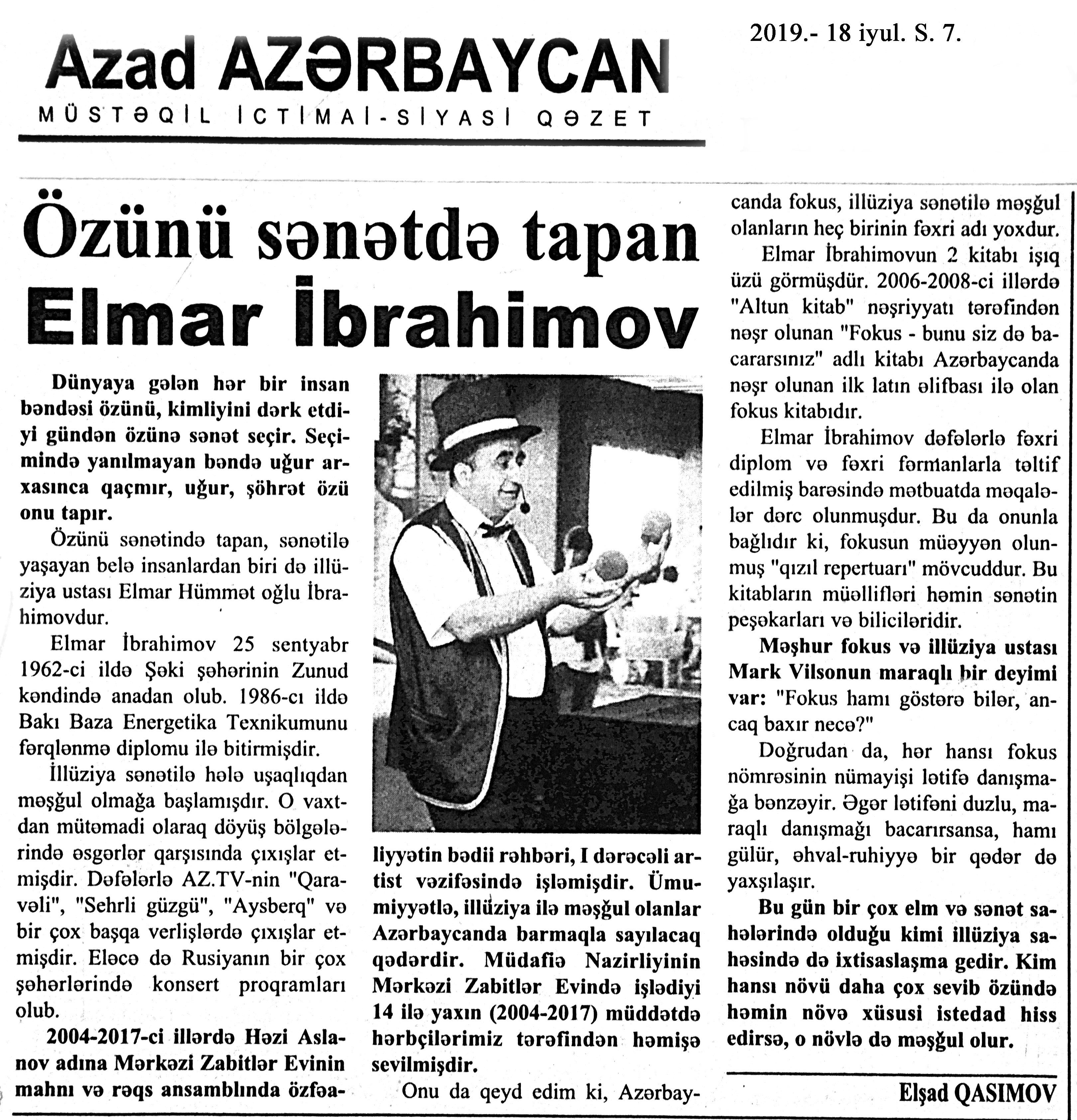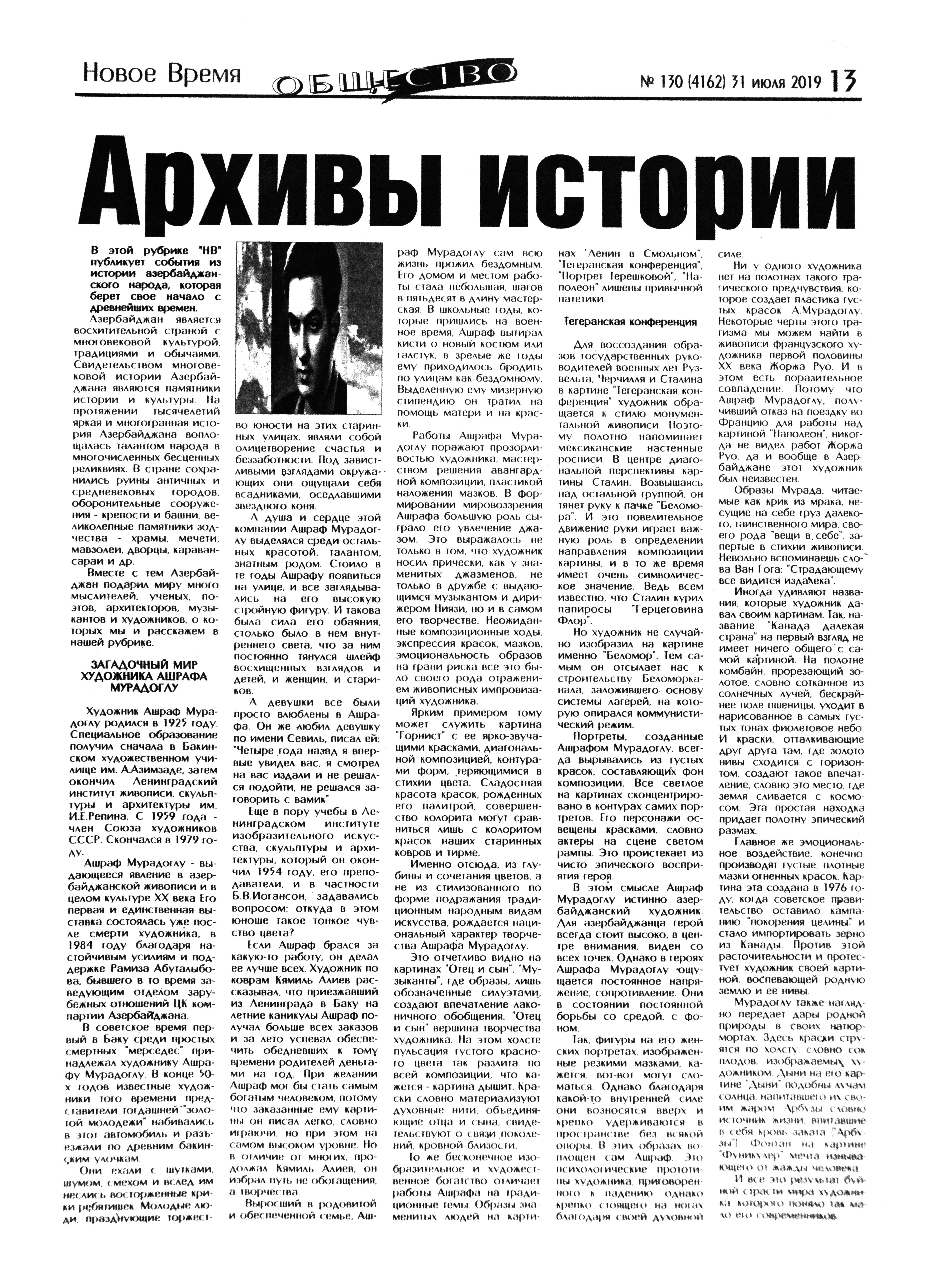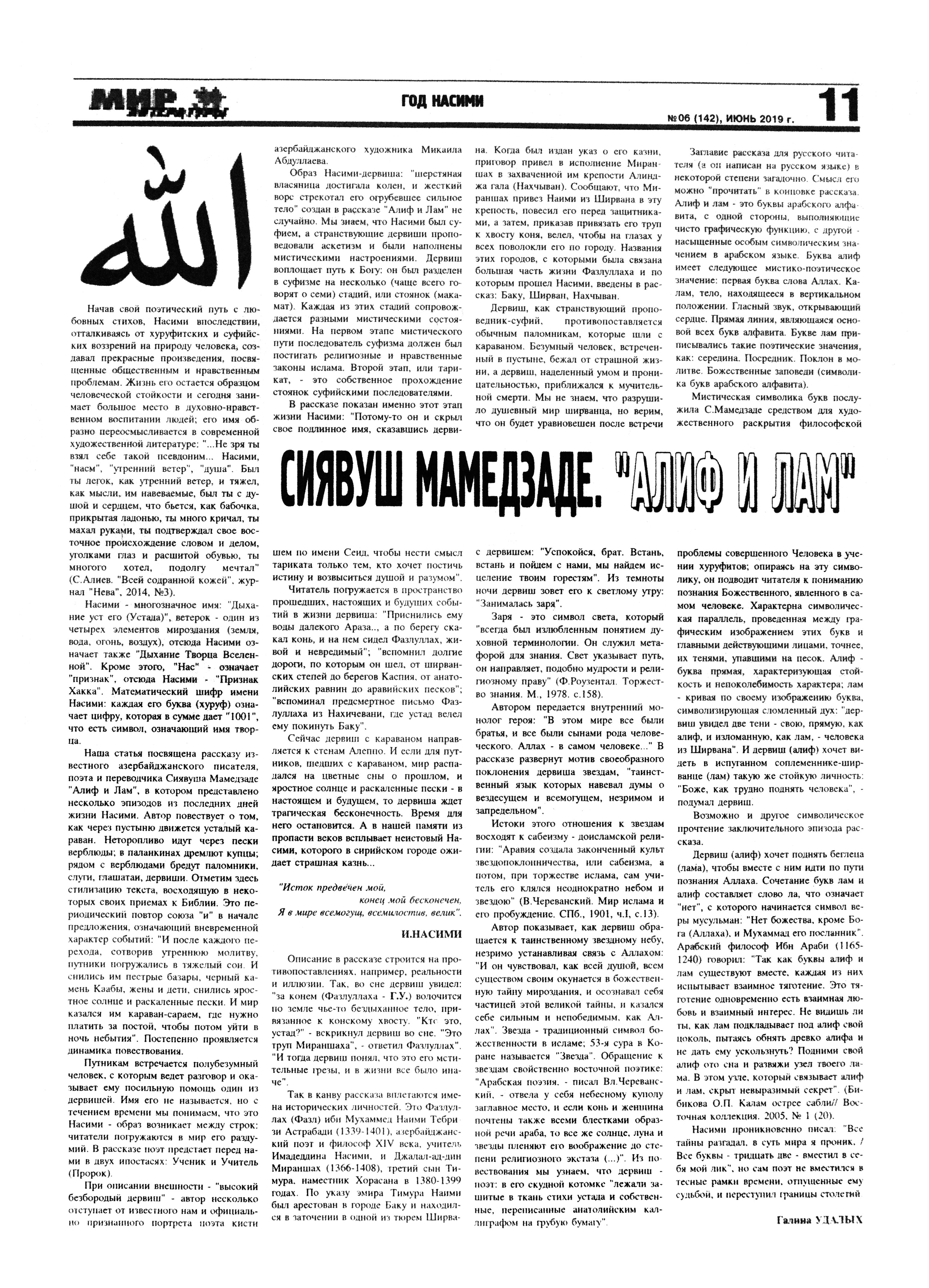 1388. Архивы истории: Загадочный мир художника Ашрафа Мурадоглу //Новое время.- 2019. - 31 июля. - С.13. 1389. Шах, Н. Живопись, исходящая из подсознания: Оригинальные работы художника Назима Шаха /беседу провела А.Ислам //Каспiй.- 2019. - 2 июля. - С.7.