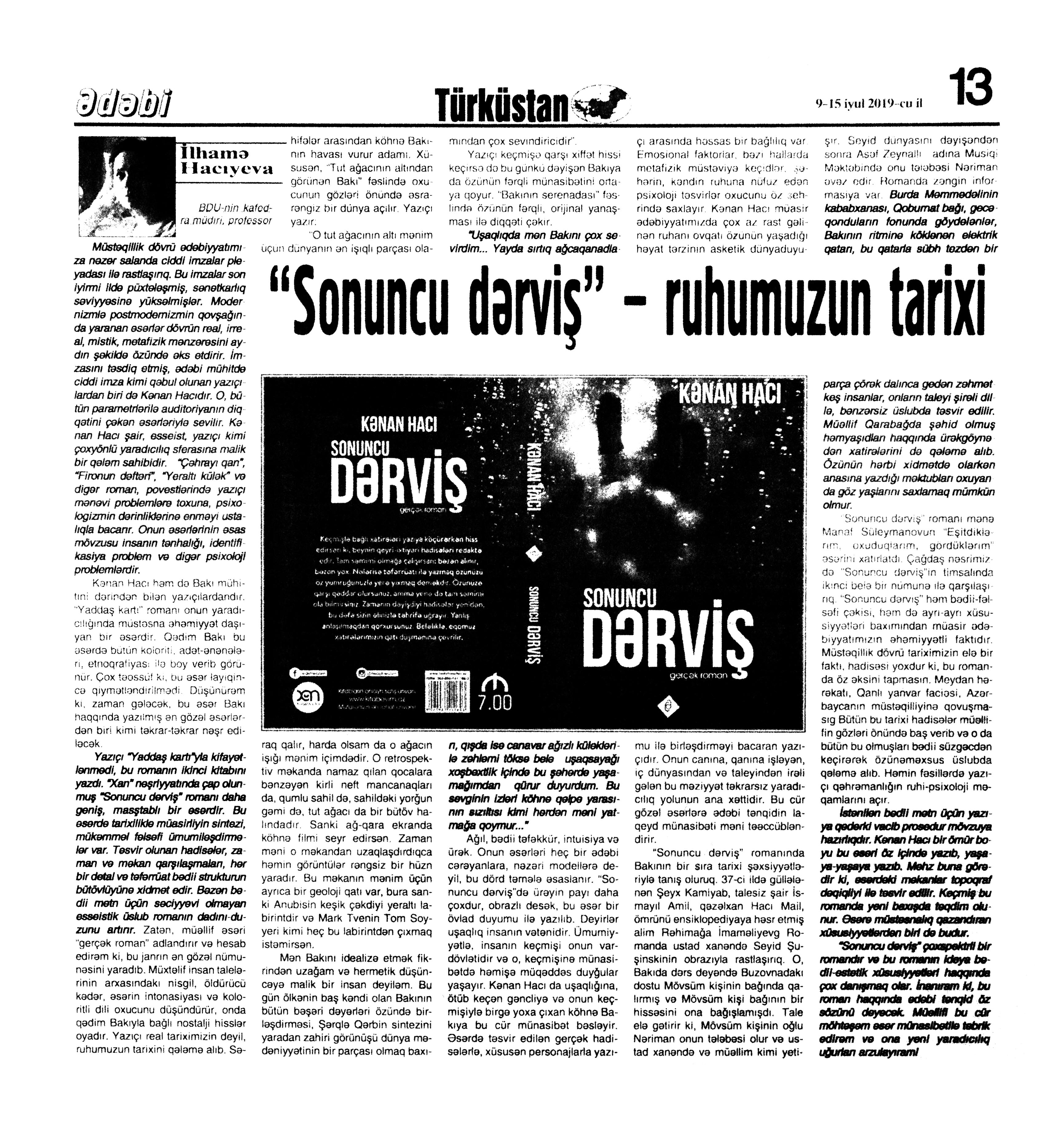 ROMANLAR 819. Cəlaloğlu, E. Yasəmən ətri: VI fəsil //Türküstan.- 2019.- 2-8 iyul.- S.21. 820. Cəlaloğlu, E. Yasəmən ətri: VII fəsil //Türküstan.- 2019.-16-22 iyul.- S.12. 821. Cəlaloğlu, E. Yasəmən ətri: VII fəsil //Türküstan.- 2019.- 23 iyul- 5 avqust.- S.12. 822. Hacı, K. Hacı İsgəndər: I fəsil: Romandan parça //Ədəbiyyat qəzeti.- 2019.- 27 iyul.- S.14-15. 823. Mirələmov, H. Çaldırana gedən yol: romandan səhifələr //Kredo.-2019.- 4 iyul.- S.2. 824. Mirələmov, H. Çaldırana gedən yol: romandan səhifələr //Kredo.-2019.- 11 iyul.- S.2. 825. Mirələmov, H. Çaldırana gedən yol: romandan səhifələr //Kredo-2019.- 18 iyul.- S.2. 826. Mirələmov, H. Çaldırana gedən yol: romandan səhifələr //Kredo-2019.- 25 iyul.- S.2.