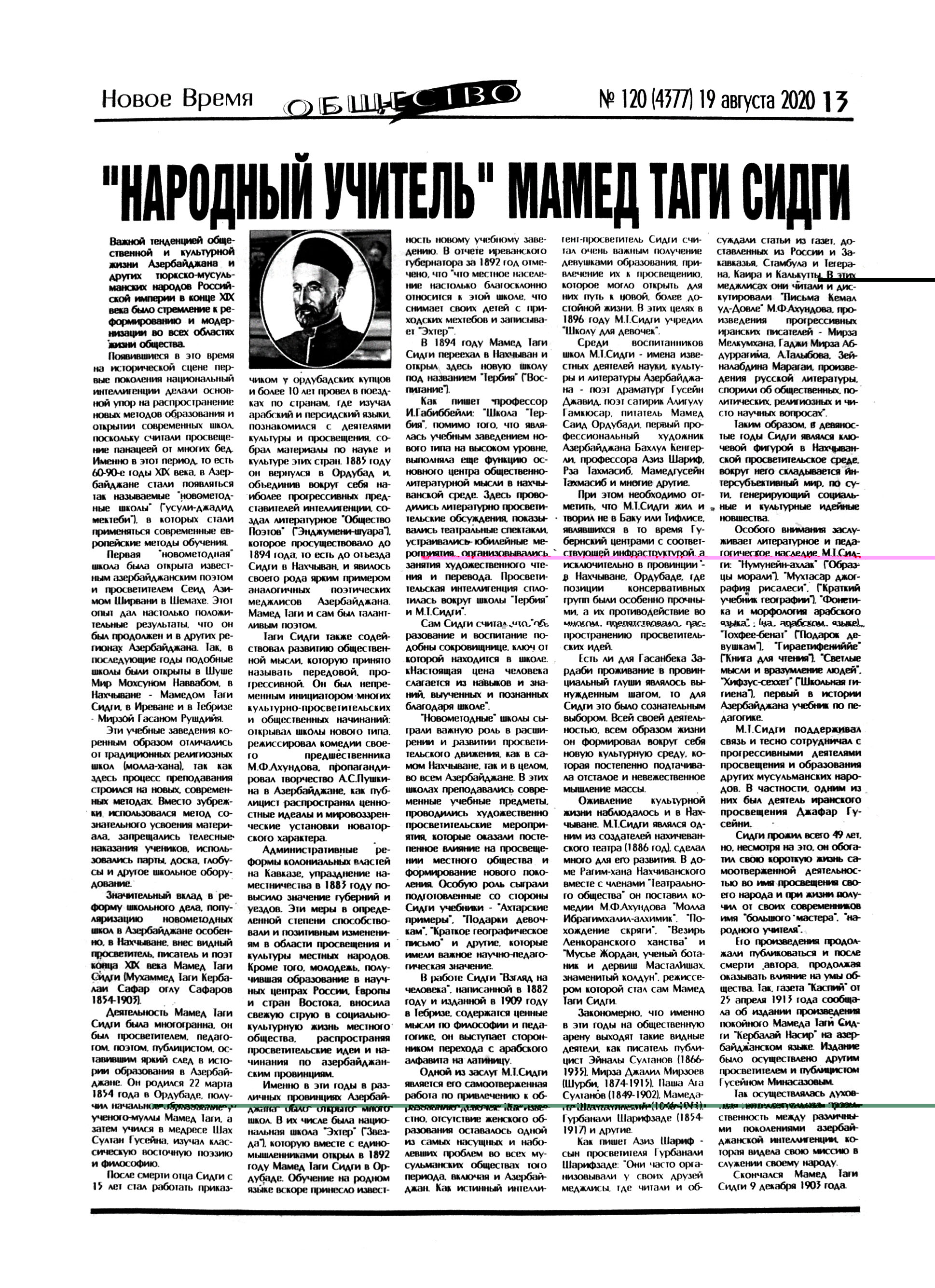 mətbuatının məşəli - Zərdabi // Türküstan.-