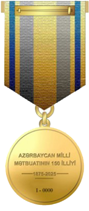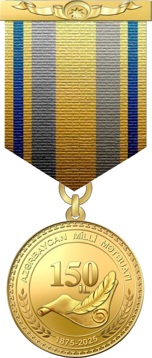 "AZƏRBAYCAN MİLLİ MƏTBUATININ 150 İLLİYİ" sözləri həkk olunmuşdur.