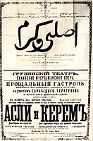 İlk tamaşası 1912-ci il mayın 18-də Bakıda Mayılov qardaşları teatrında (sonralar M.F.Axundov adına Azərbaycan Dövlət Opera və Balet Teatrı) olmuşdur. Baş rollarda: H.Sarabski (Kərəm), Ə.Ağdamski (Əsli), M.H.Terequlov (Qara keşiş), M.M.Məmmədov (İsfahan şahı). Rejissor: H.Ərəblinski, dirijor: Ü.Hacıbəyli, xormeyster: M.H.Terequlov.