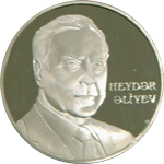 Azərbaycan Respublikasının Mərkəzi Bankı Azərbaycan xalqının ümummilli lideri Heydər Əlirza oğlu Əliyevin xatirəsinin əbədiləşdirilməsi haqqında Azərbaycan Respublikası Prezidentinin fərmanına əsasən, 10 dekabr 2004-cü ildə dövriyyəyə gümüş xatirə sikkələri buraxmışdır. Xatirə sikkələrinin üz tərəfində Azərbaycan xalqının ümummilli lideri Heydər Əliyevin portreti, portretin sağ tərəfində "Heydər Əliyev" sözləri, arxa tərəfində isə Azərbaycan Respublikasının xəritəsi və "Azərbaycanın müstəqilliyi daimidir, əbədidir, dönməzdir" sözləri yazılmışdır. Xatirə sikkələri İngiltərənin "Royal Mint" Kral Sikkəxanasında yüksək beynəlxalq standartları uyğun hazırlanmışdır. Sikkənin arxa hissəsində olan xəritənin alt hissəsində xatirə sikkələrinin buraxıldığı il 2004-cü il, xəritənin ətrafında dairəvi şəkildə üst hissəsində Azərbaycan Respublikası, alt hissəsində isə xatirə sikkələrinin nominalı göstərilmişdir. Xatirə sikkələri Azərbaycan Respublikası ərazisində qanuni ödəniş vasitəsidir. |