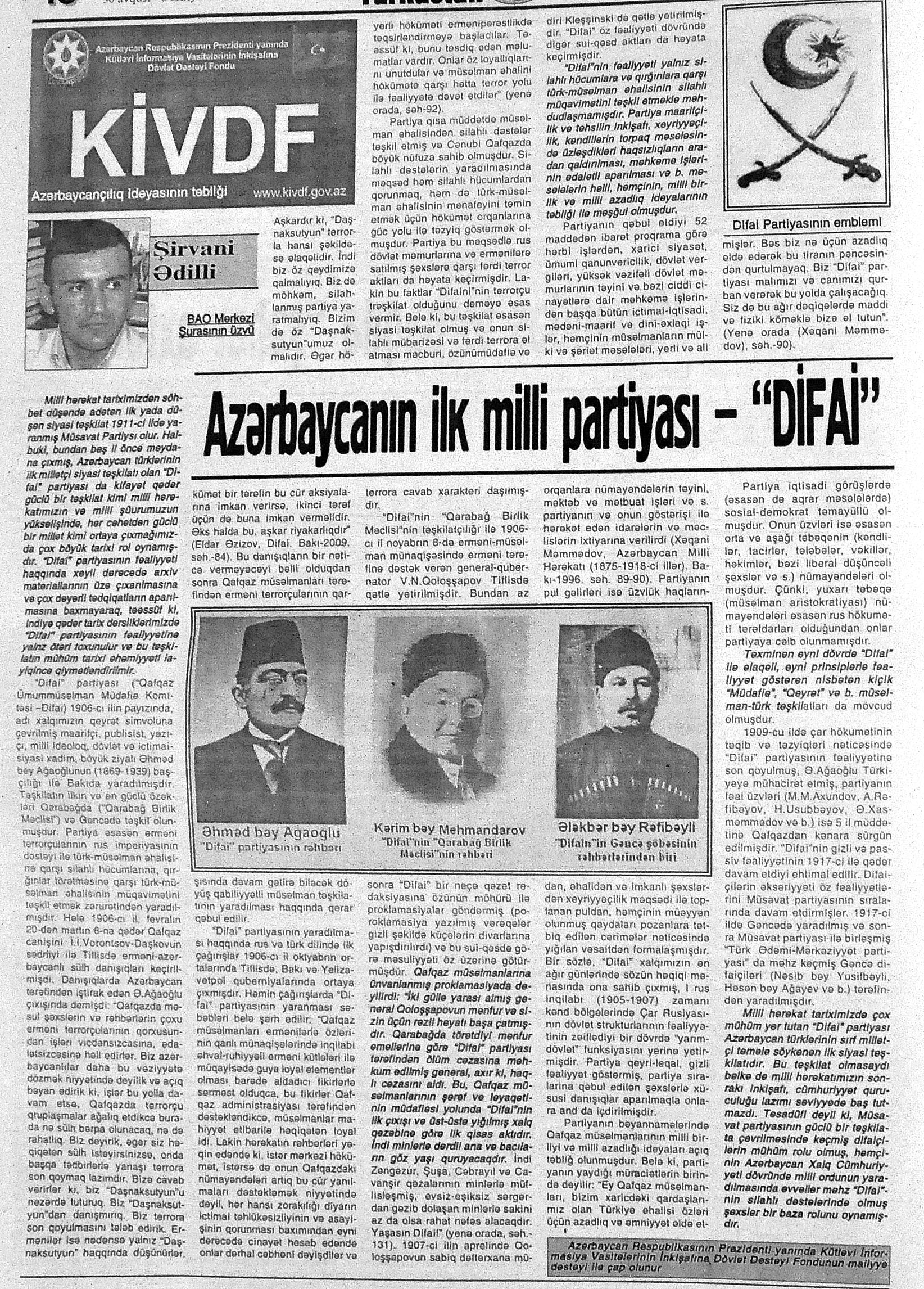 "Difai" partiyasının yaranması [Mətn] /E.Əzizov //Ədalət 2011. - 18 fevral.