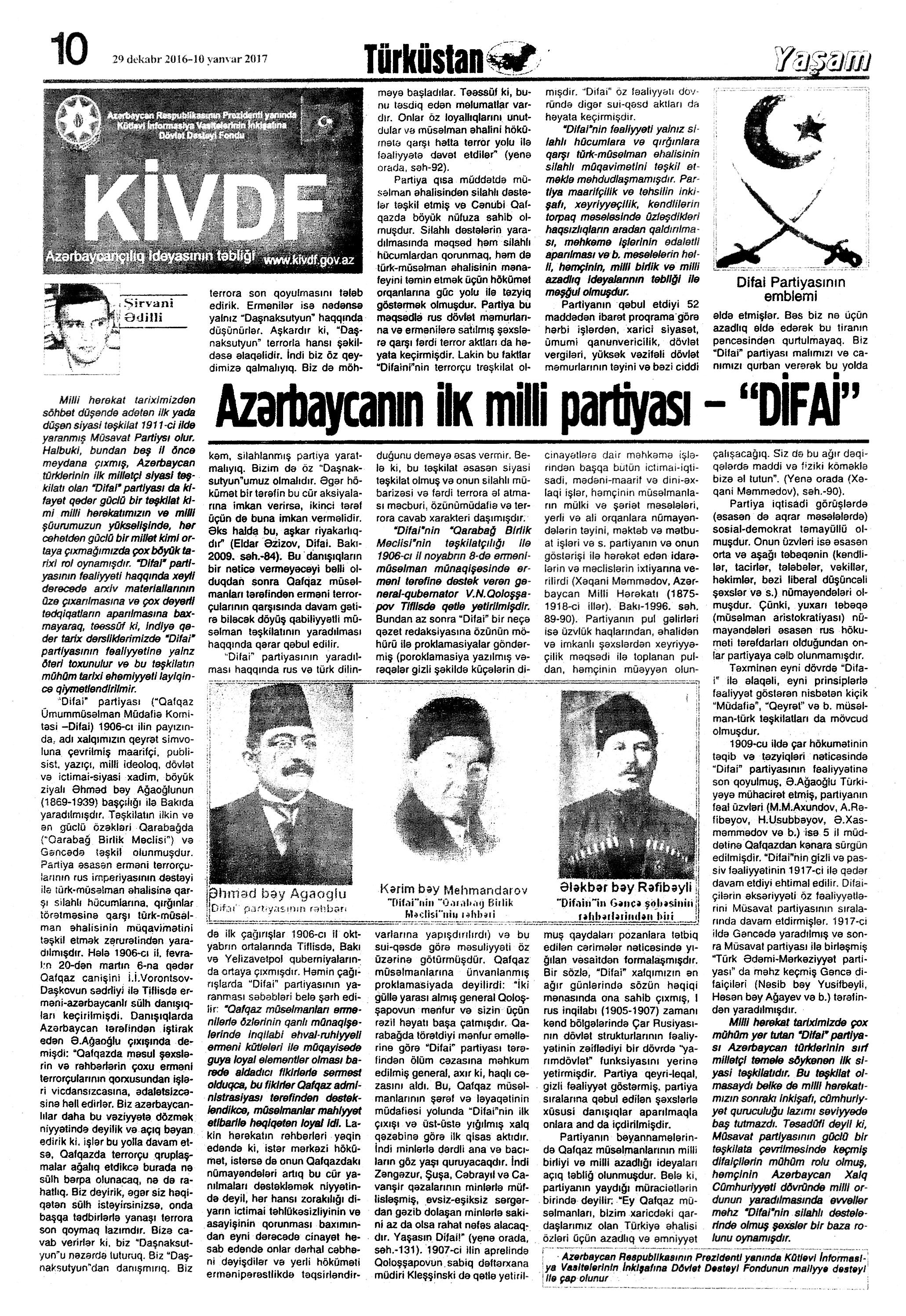Azərbaycanın ilk milli partiyası-"Difai" [Mətn] /Ş. Ədilli //Türküstan