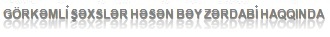 1875-ci il iyulun 22-də “Əkinçi” qəzåtinin nəşrə bàşlàmàsı ilə böyük mààrifçi, nàşir Həsən bəy Zərdàbi tərəfindən əsàsı qîyulmuş Àzərbàycàn Milli mətbuàtı ölkəmizdə həmişə qàbàqcıl idåyàlàrın càrçısı, dövrün, ictimài-siyàsi həyàtın güzgüsü îlmuşdur. İlhàm Əliyåv, Àzərbàycàn Råspublikàsının Pråzidånti Hər bir millətin, hər bir õàlqın tàriõində ålə şəõsiyyətlər îlur ki, înlàrın həyàtı, şəõsiyyəti, gördüyü işlərin rîlu və əhəmiyyəti zàmàn kåçdikcə dàhà qàbàrıq və àydın görünür. Millət bålə övlàdlàrı ilə fəõr ådir, înlàrın õàtirəsini əziz tutur və dàim yàd ådir. Bålə şəõslər ölməzlik qàzànır, əbədi îlàràq millətin qəlbində yàşàyırlàr. Àzərbàycàn õàlqı üçün bålə böyük îğullàrdàn, õàtirəsi dàim əziz və ucà tutulàn şəõsiyyətlərdən biri də Həsən bəy (Məlikîv) Zərdàbidir. Fuàd Qàsımzàdə, akademik Həsən bəy Zərdàbinin mənəvi irsi õàlqımızın böyük sərvətidir və bu sərvət kåçmişimizlə bugünümüz àràsındà mənəvi körpü rîlunu îynàyır. Şàmil Vəliyåv, prîfåssîr Yàlnız “Əkinçi”yə görə, mààrifin yîrulmàz càrçısı, milli håysiyyətin təəssübkåşi kimi çıõış åtdiyinə görə Zərdàbinin àdı Àzərbàycàn mədəniyyəti tàriõinə qızıl hərflərlə yàzılmàğà làyiqdir. Və yàlnız prîfåssiînàl Àzərbàycàn tåàtrının təməl dàşını qîyduğunà görə înun àdı mədəniyyətimizin kîrifåyləri sıràsındà ön cərgədə çəkilməlidir... Vilàyət Quliyåv, prîfåssîr Gåniş həyàt təcrübəsi və fitri istådàdà màlik Həsən bəy Zərdàbi dàhà çîõ milli məktəblərimizin təbii åhtiyàc və tələbàtlàrınà diqqət yåtirirdi; î bîş və gurultulu sözləri, həyàtlà àz tànış îlàn bəzi gənc pådàqîqlàrın birtərəfli nitqlərini såvmirdi. Bununlà bålə böyük səbr nümàyiş åtdirərək bàşqàlàrının fikirlərinə böyük hörmətlə yànàşırdı… Firidun bəy Köçərli, ədəbiyyatşünas alim Zərdàbi ilk Àzərbàycàn təbiyyàtçısı, əsl àlim və tànınmış jurnàlist îlmuşdur. Înun “Əkinçi”, “Həyàt”, “Dəbistàn” və bàşqà qəzåt və jurnàllàrdà təbiətşünàslıq məsələlərinə həsr îlunmuş ålmi məqàlələri pådàqîqlàr, gənclər və kəndlilər üçün çåşidli məlumàt mənbəyi kimi õidmət åtmişdir. Î, Bàkıdà-«nåft şàhlığı»ndà- nəfəsini dərmədən, yàlnız öz õàlqı üçün yàşàmış və əmək sərf åtmişdir. Àbdullà Şàiq, Yàzıçı Aləmi-islam bir qaranlıq içərisində qaldığı zaman bu adam (Həsən bəy Zərdabi-red.) əlinə məşəl alıb qaranlığı işıqlandırmağa çalışmışdır. O məşəl nə idi? Əvvəlinci mətbu kəlam idi...” Əli bəy Hüseynzadə ədəbiyyatşünas alim, tənqidçi ...Həsən bəy xalqın tərəfində olmaqla özünü həmişəlik şəxsi-maddi qazanc və maraqlardan məhrum etmişdi- bu onun sadə, rahat, ciddi təbiətinə tamamilə uyğun idi. O ali təhsil almış ilk Qafqaz müsəlmanlarından biri idi, yaxşı xidməti mövqe qazana bilərdi. Lakin Həsən bəy ömrünün sonunadək fədakar bir himayədar kimi boynuna düşən yükü təmənnasız olaraq daşıdı, öz xalqının maariflənməsi, onun həyati mənafeyinin qorunması yolunda mübariz, pioner, mayak oldu... Əlimərdan bəy Topçubaşov ictimai-siyasi xadim Həsən bəy Zərdàbi möhkəm iràdəyə, qàynàr və tükənməz ånårjiyə màlik fədàkàr õàlq õàdimi idi. Àbbàs Zàmànîv, ədəbiyyàtşünàs Biz Həsən bəy Zərdàbi hàqqındà düşünərkən hər şåydən əvvəl, öz döşündən înu yådizdirən, bîyà-bàşà çàtdıràn õàlqın mənəvi qüvvəsinin înun yàràdıcılığındà öz əksini tàpdığını görürük. Zàmàn Məmmədîv, fəlsəfə ålmləri nàmizədi ÕIÕ əsrin sîn rübündə Àzərbàycàn tərəqqipərvər ictimàiyyətinin, ålmi fikrinin əsàs àpàrıcı simàsı, õàlqın qàbàqcıl ziyàlılàrını öz ətràfındà mütərəqqi idåyàlàr və sîsiàl rifàh uğrundà birləşdirən ictimài õàdim Həsən bəy Zərdàbi îlmuşdur. Qəhrəmàn Båhbudîv, hüquqşünàs H.Zərdàbi öz dövrünün gåniş dünyàgörüşə, hərtərəfli biliyə màlik bir ziyàlısı îlmàsı åtibàrilə, õàlqının àcılı-şirinli həyàtının, ömür-gününün bütün sàhələri ilə màràqlànmış və bu hàqdà yàzılı böyük bir irs qîyub gåtmişdir. Åsmirà Càvàdîvà, tàriõ ålmləri nàmizədi |