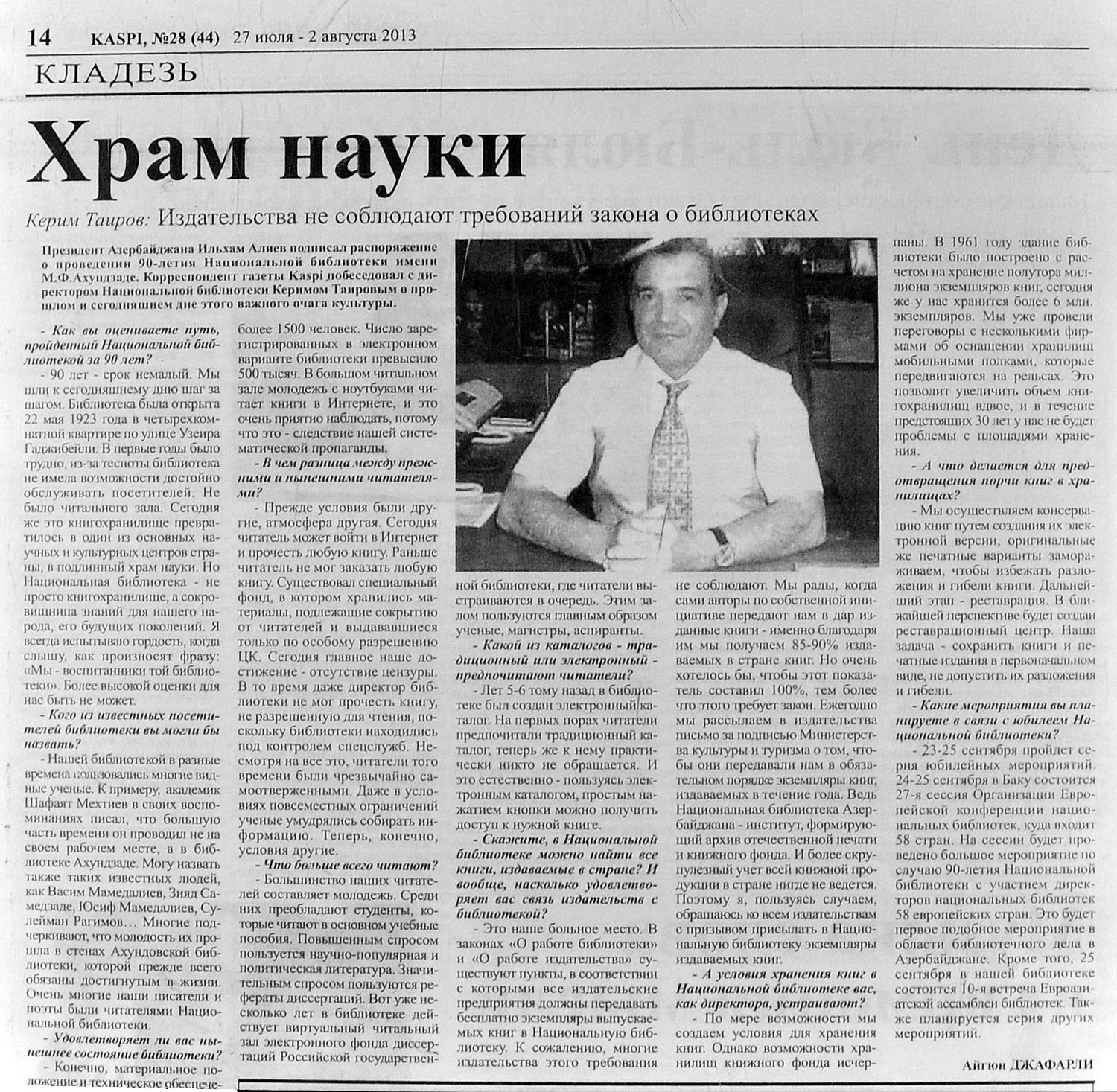 Керим Таиров, директор Азербайджанской Национальной Библиотеки им. М.Ф.Ахундова: