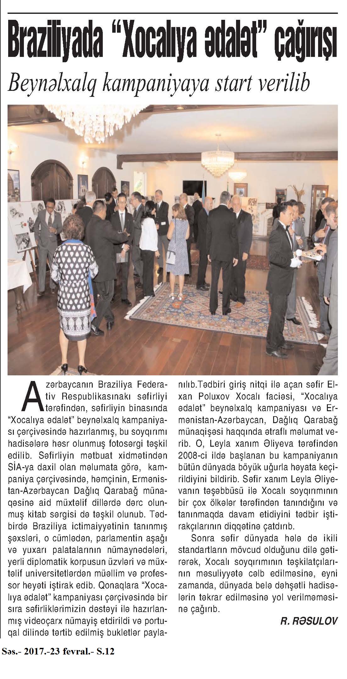 2011.- 26 fevral.- S. 6..- Xocalı soyqırımı