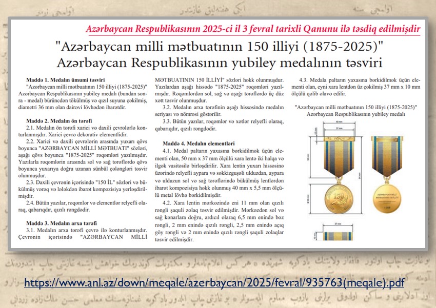 Azərbaycan Respublikası Konstitusiyasının 109-cu maddəsinin 32-ci bəndini rəhbər tutaraq, milli mətbuatın Azərbaycanın ictimai-siyasi və mədəni həyatındakı yerini, mədəniyyətin, maarifçiliyin inkişafında rolunu, müasir cəmiyyət quruculuğu və ölkəmizin beynəlxalq nüfuzunun daha da yüksəldilməsi sahəsində töhfələrini nəzərə alaraq