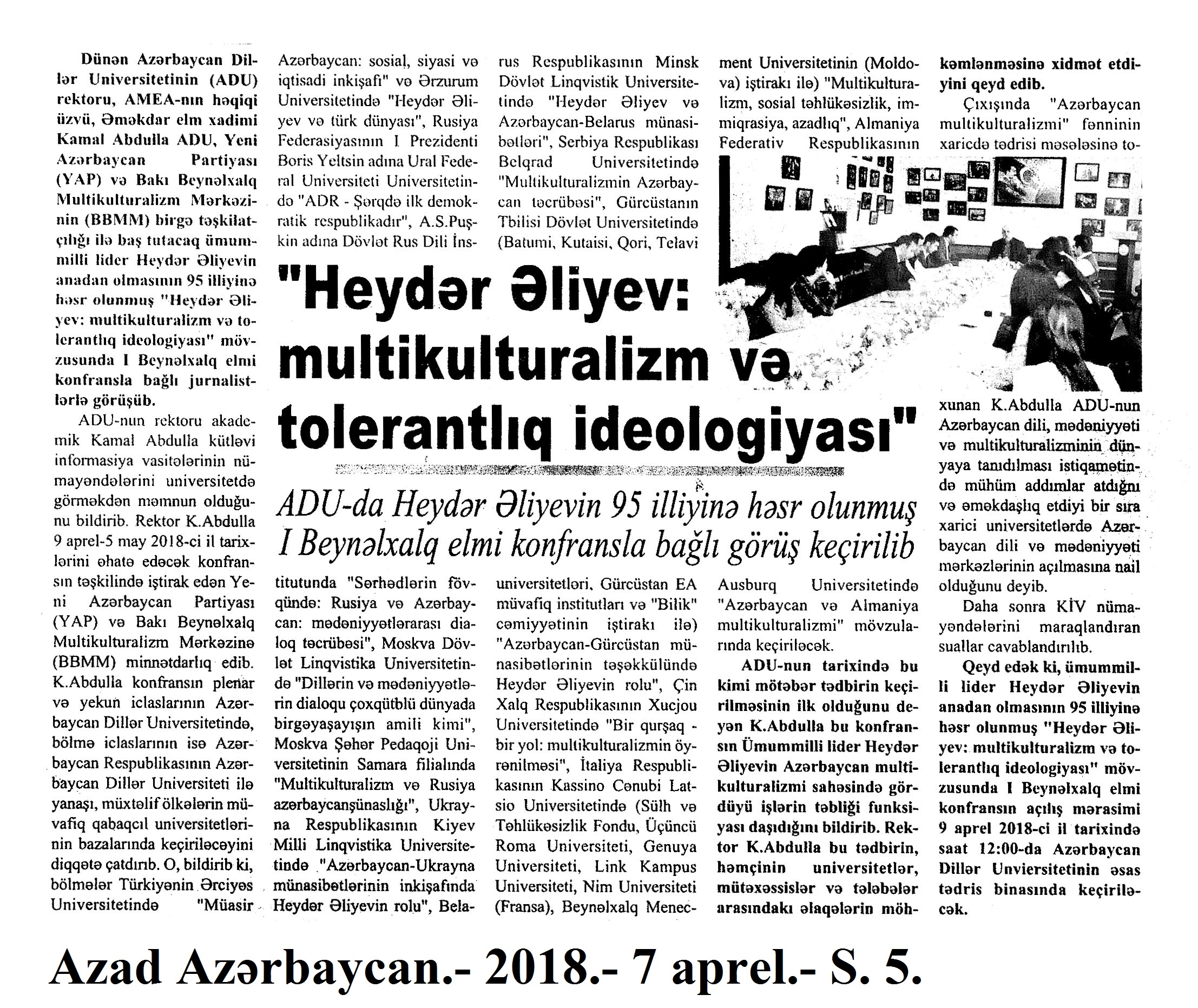 sərvətidir" [Mətn] //Yeni Azərbaycan.- 2024.- 2 may,