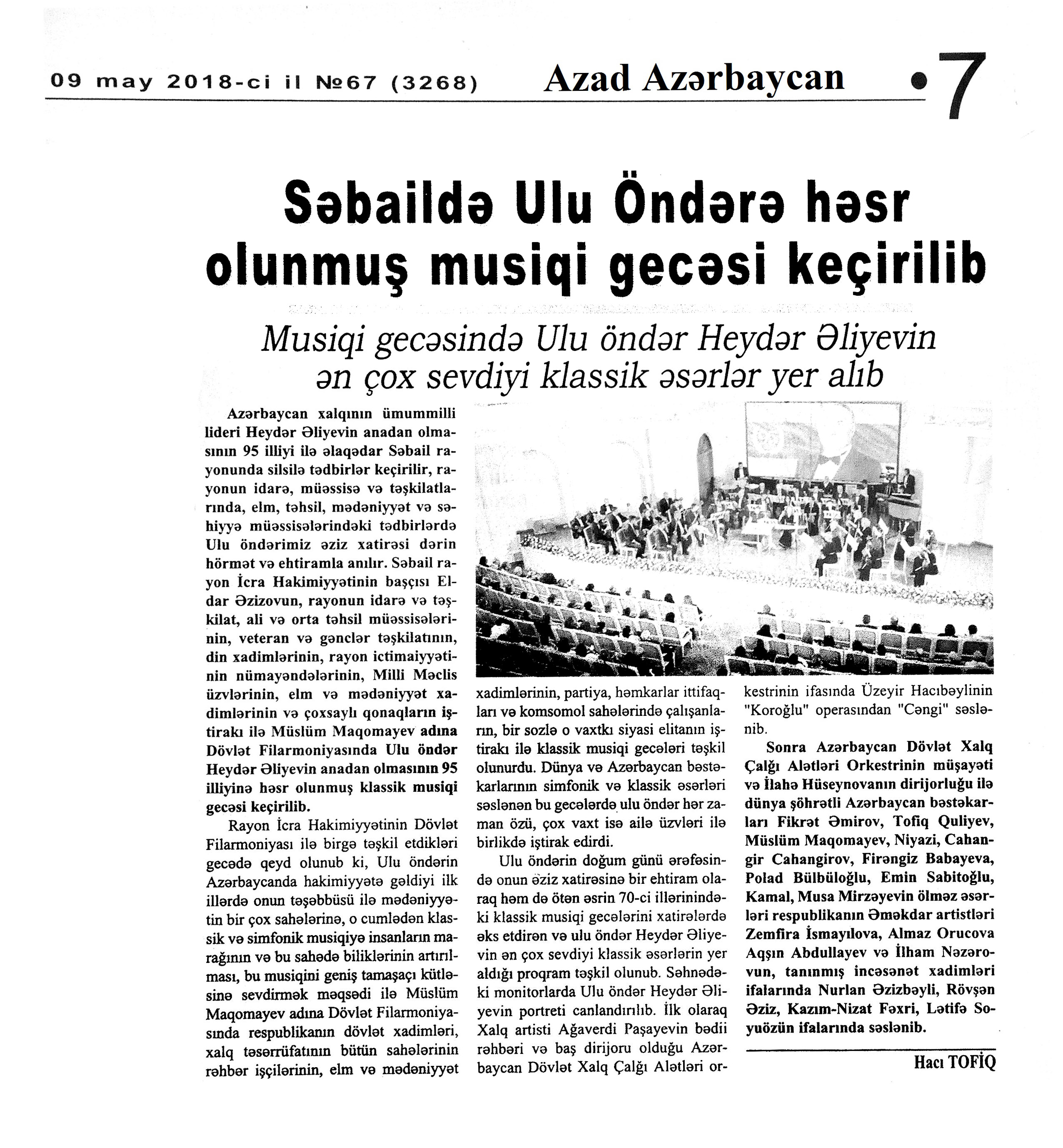Mustafayevin quruluşunda hazırlanan dahi şəxsiyyət Heydər Əliyevə həsr