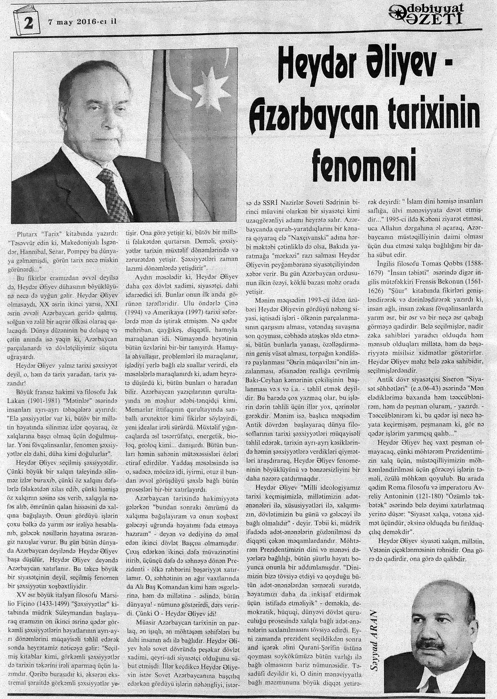 öndər Heydər Əliyevin rolu haqqında] //Səs.- 2010.- 8 may.- S.16.