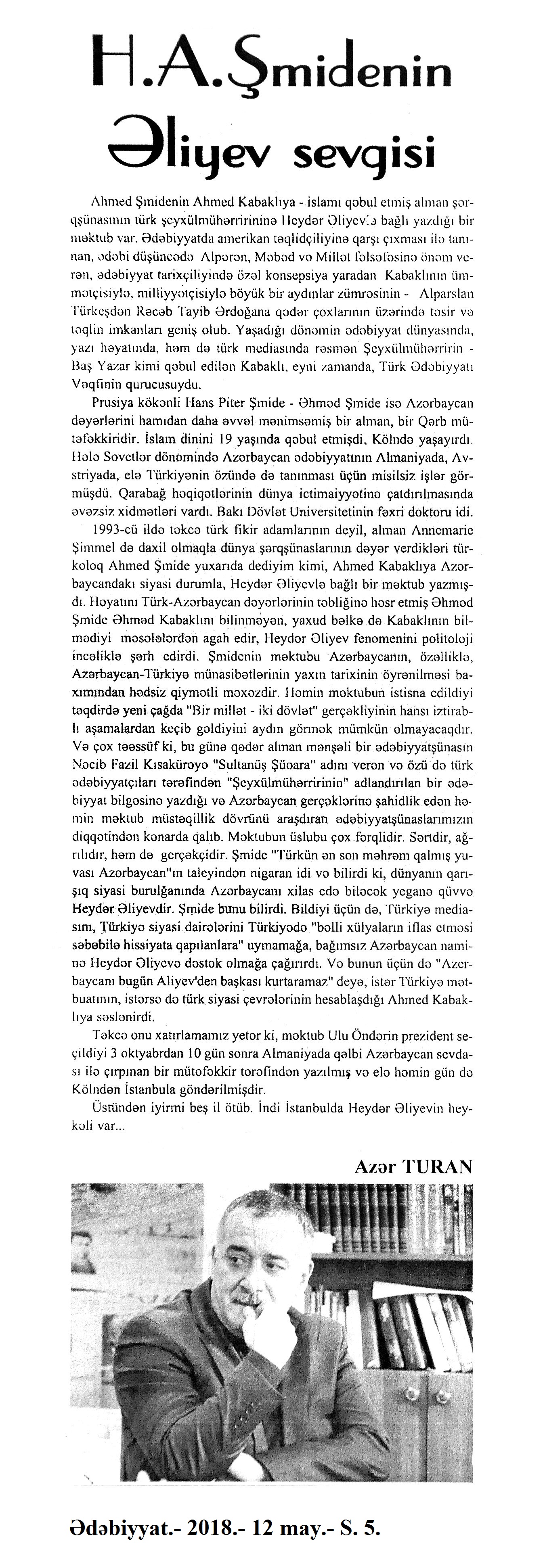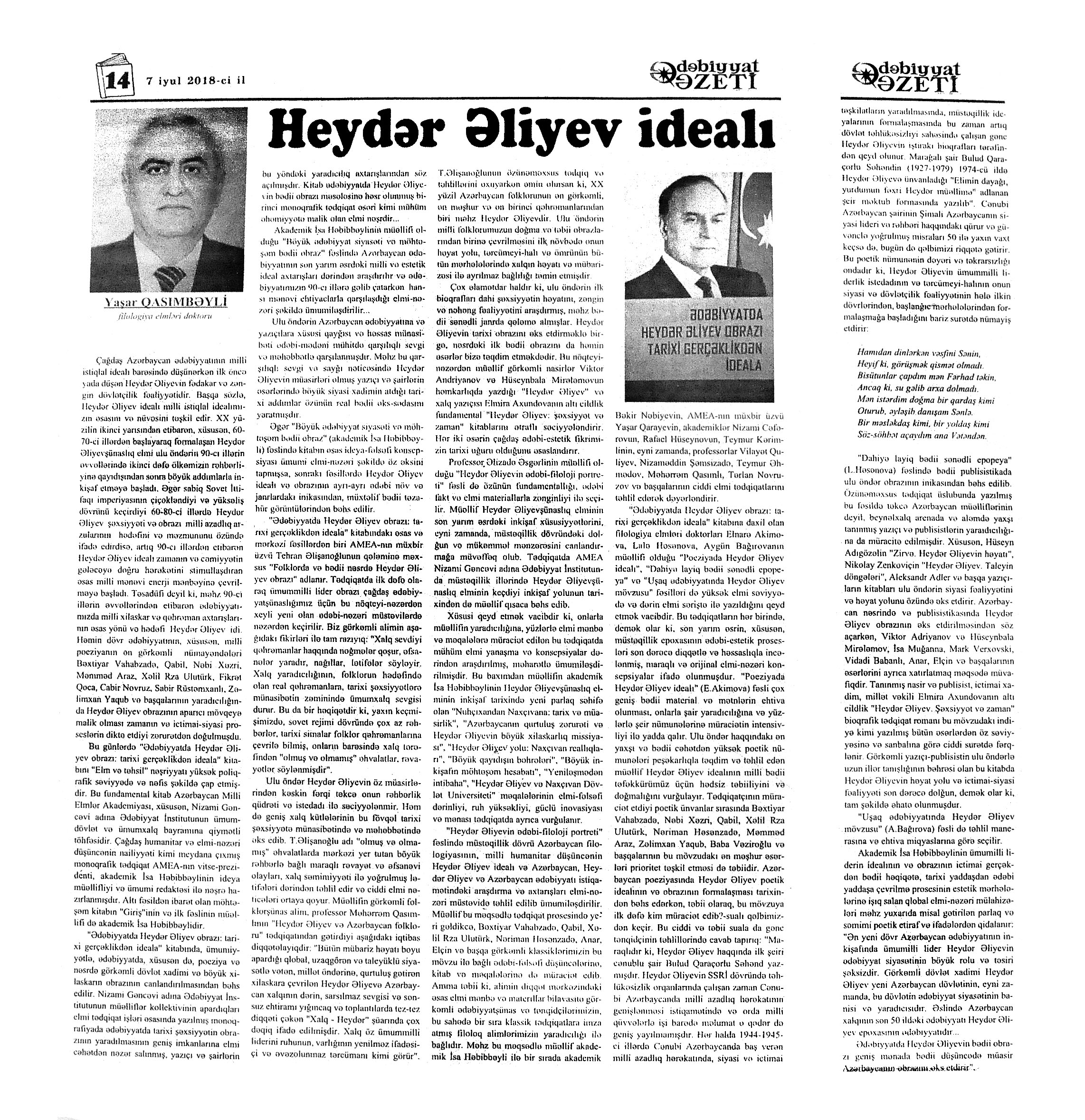 Əliyev haqqında //Ədəbiyyat qəzeti.- 2009.- 8 may.- S.2.