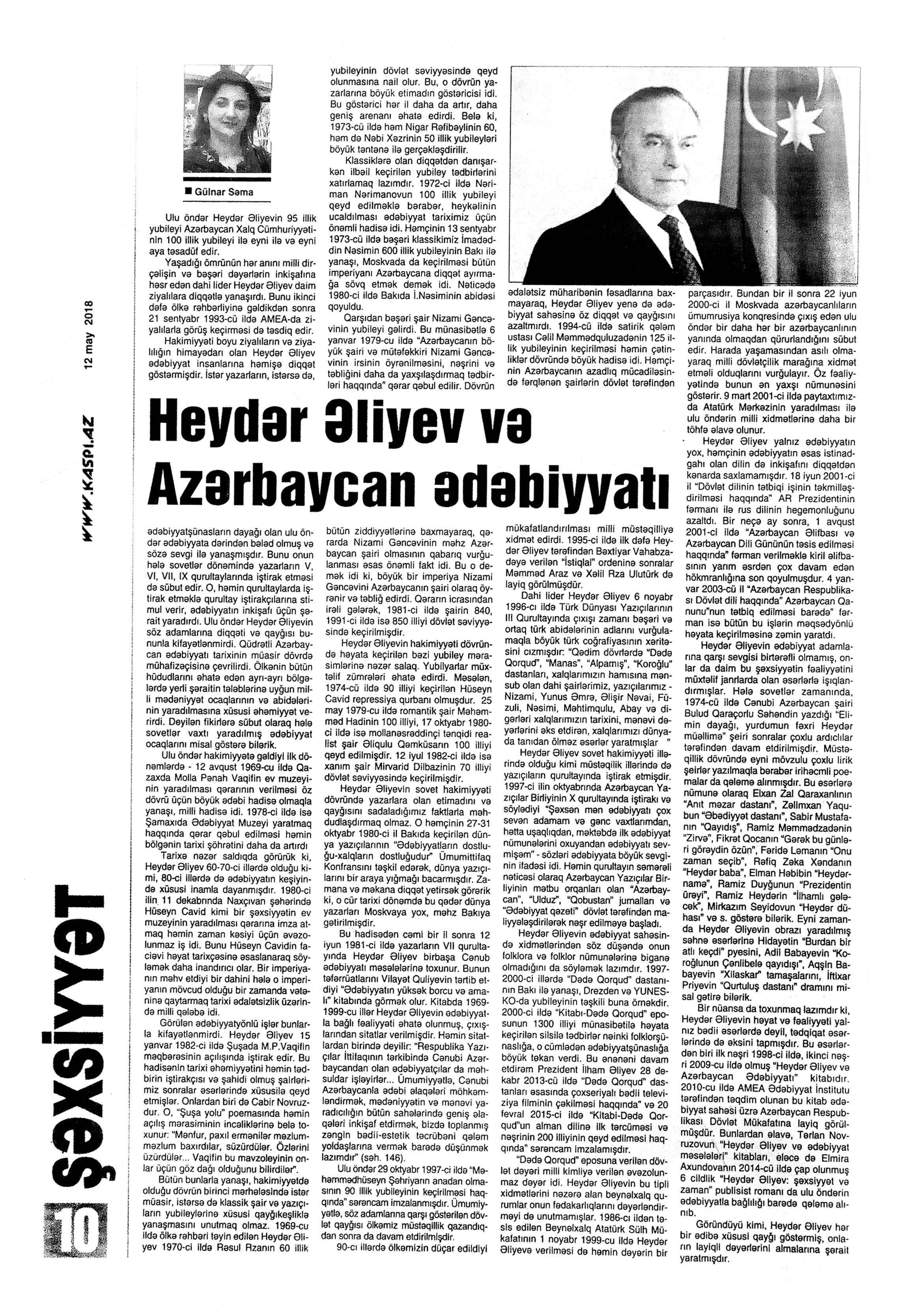 Əliyev tarixi, hətta əfsanəvi şəxsiyyətdir //Ədəbiyyat qəzeti.- 2009.- 8