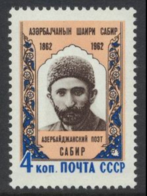Mirzə Ələkbər Sabirin 100 illiyi münasibətilə buraxılmış SSRİ poçt markası (1958).