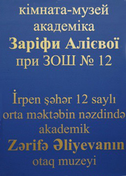 Ukraynanın İrpen şəhərində 12 saylı orta məktəbin nəzdində akademik Zərifə Əliyevanın otaq muzeyi təşkil edilmişdir..
