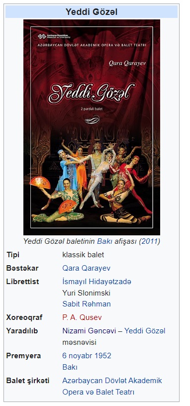 Yeddi gözəl (balet) Şah və xidmətçi (film, 1976) Xeyir və Şər (film, 1980) Fitnə (film, 1970) Leyli və Məcnun (film, 1961)
