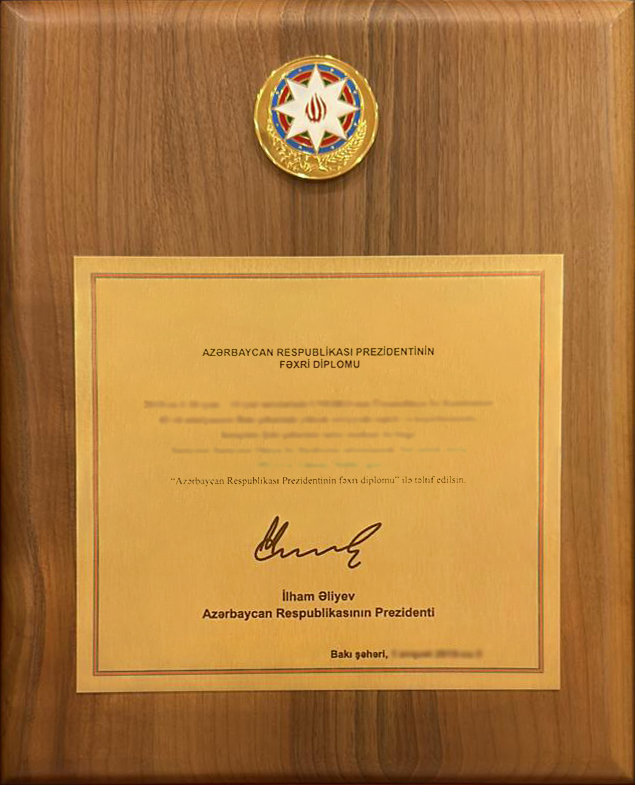 AZƏRBAYCAN RESPUBLİKASI PREZİDENTİNİN FƏXRİ DİPLOMU