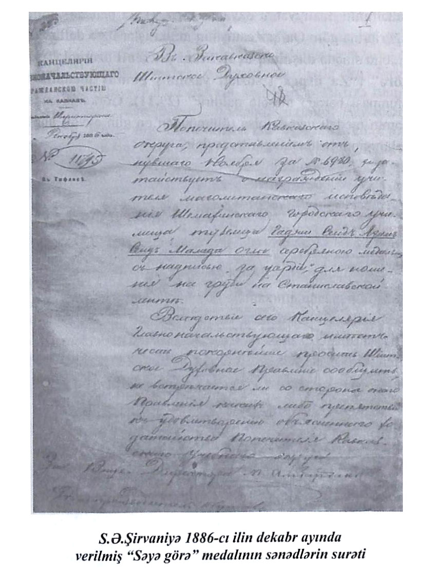 "ZA USERDİYE" (SƏYLƏRƏ GÖRƏ) MEDALININ SƏNƏDLƏRİNİN
