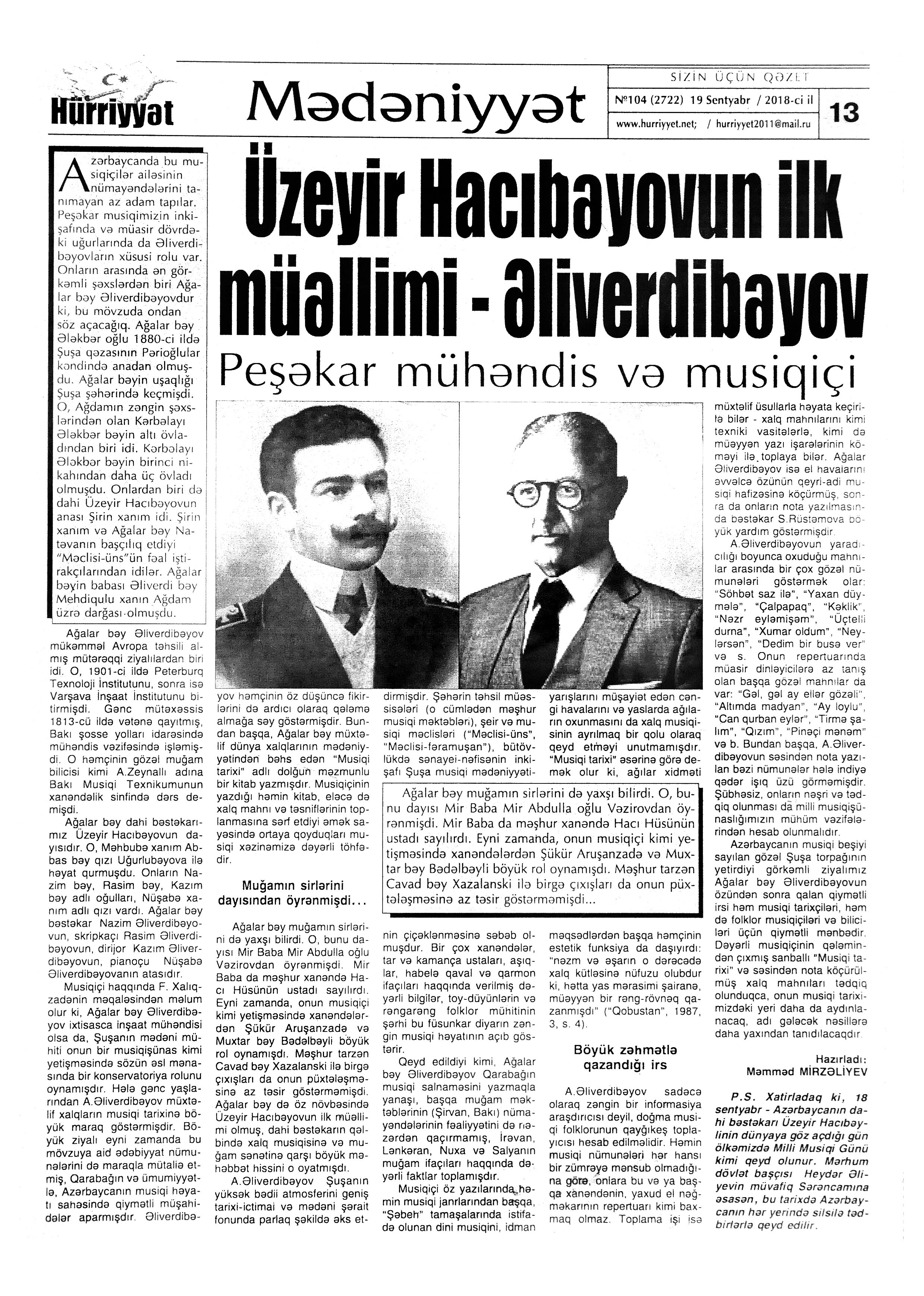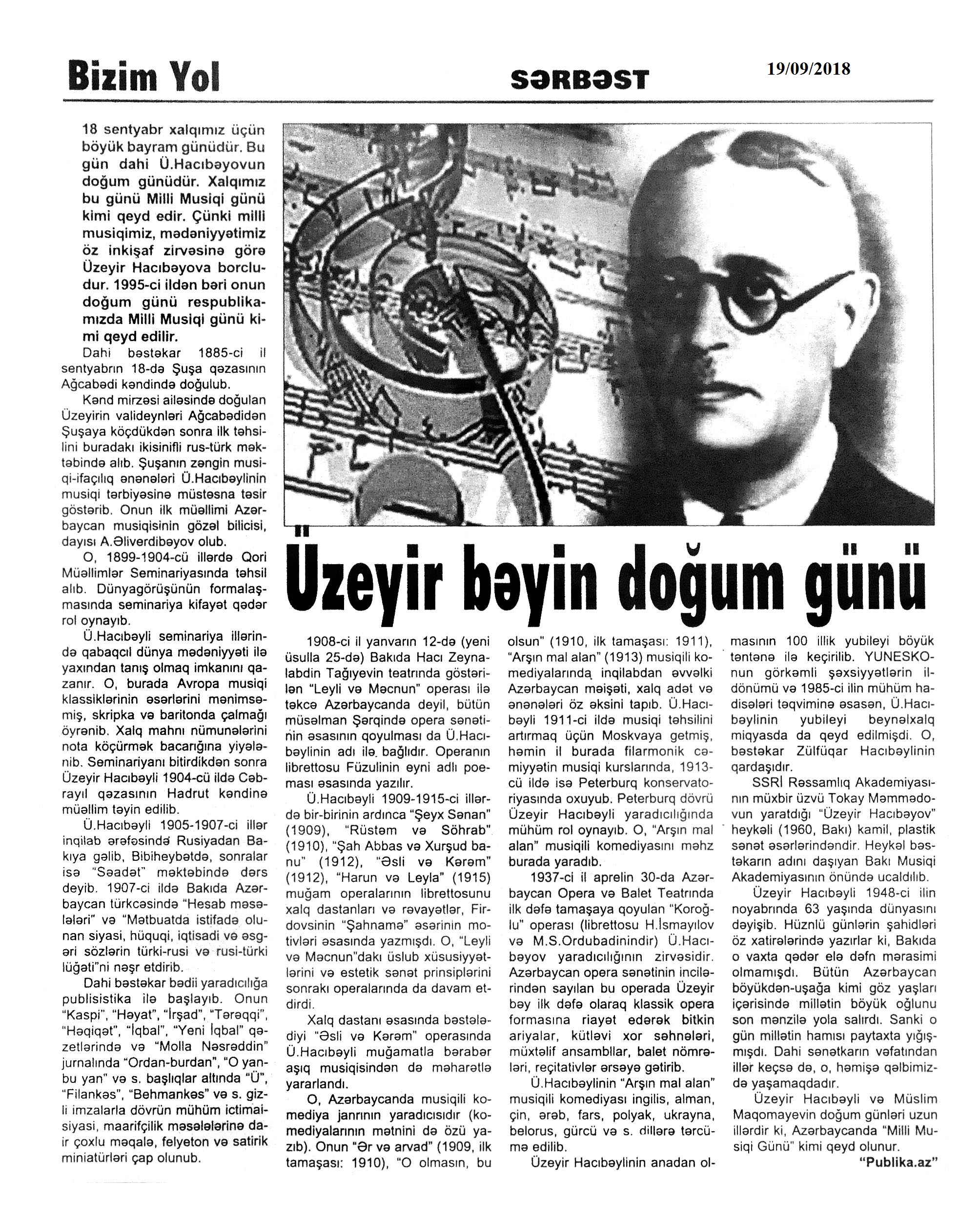 Üzeyir Hacıbəyli – 140 /S.Qarabağlı Mənbə: //Xalq